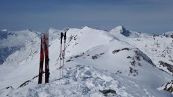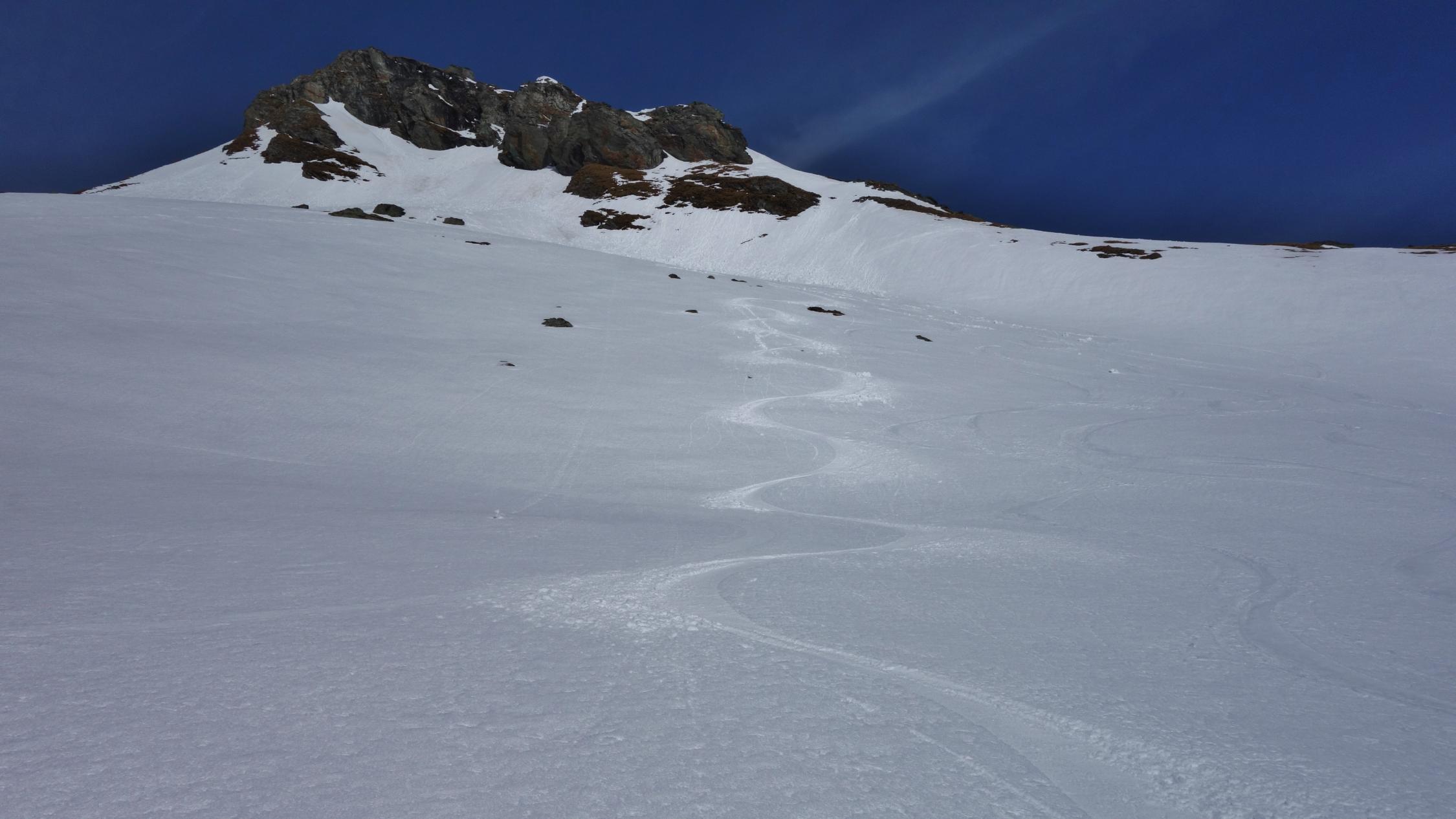 Perfekte Frühlingsverhältnisse. Start um 7.30 Uhr in Nufenen auf gefrorener Schneedecke. Problemlos ohne Harscheisen bis auf den Gipfel. Abfahrt vom Gipfel um 11 Uhr, traumhafter Sulzschnee von oben bis unten. Man schwebt förmlich über die offenen Hänge auf der butterweichen Unterlage ins Tal....
