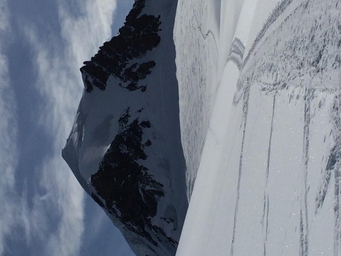 Heute war der Pollux Ziel von mindestens 20 Tüürlern, auf dem Castor wohl niemand, der sieht arg verblasen und aper aus. Wohl nur mit Steigeisen machbar.