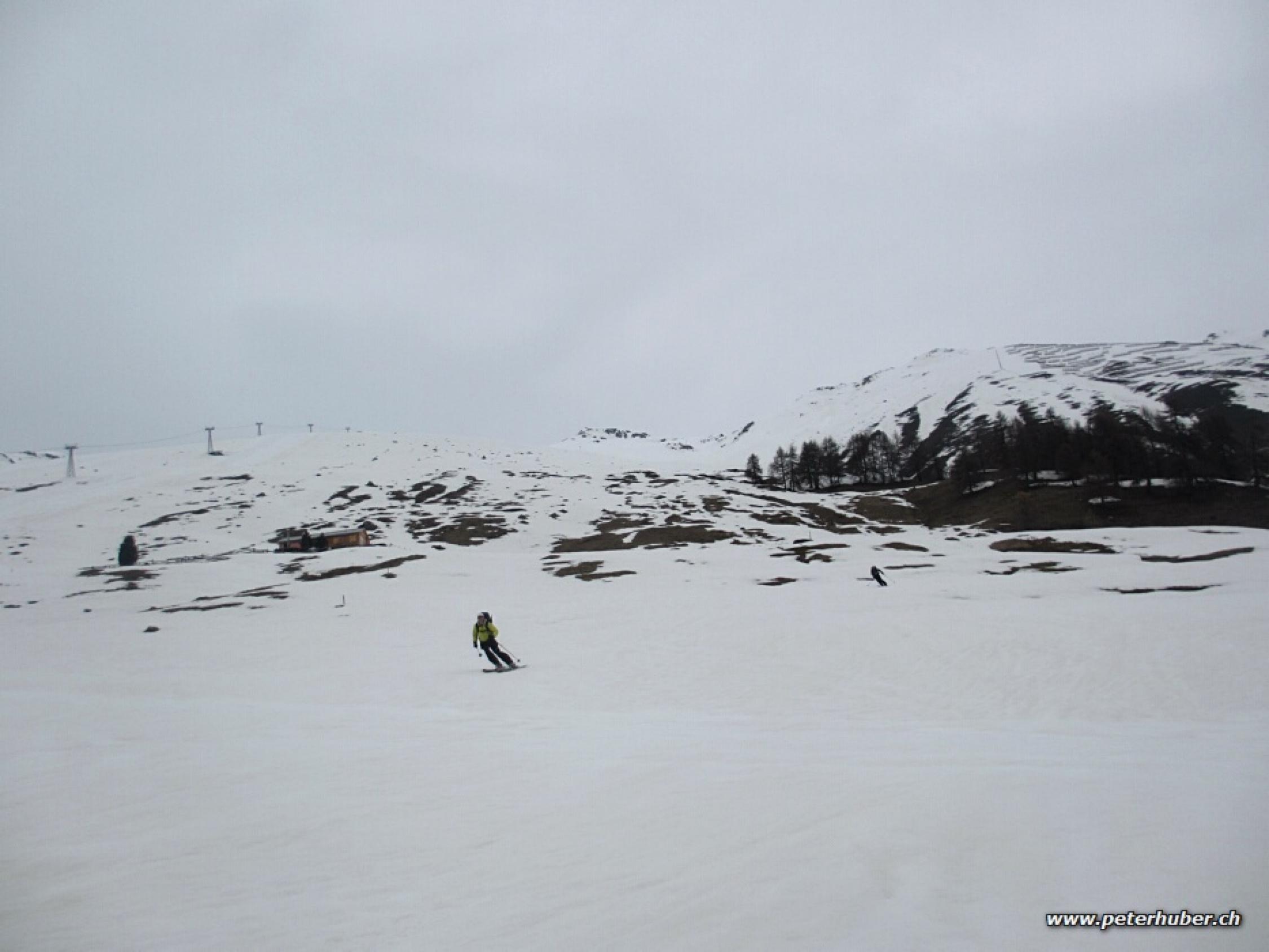 Hohe Schleierwolken, später diesige Sicht. Genügend Schnee bis nach Zuoz hinunter. Gut gefroren.