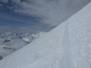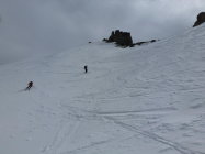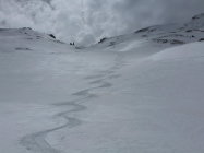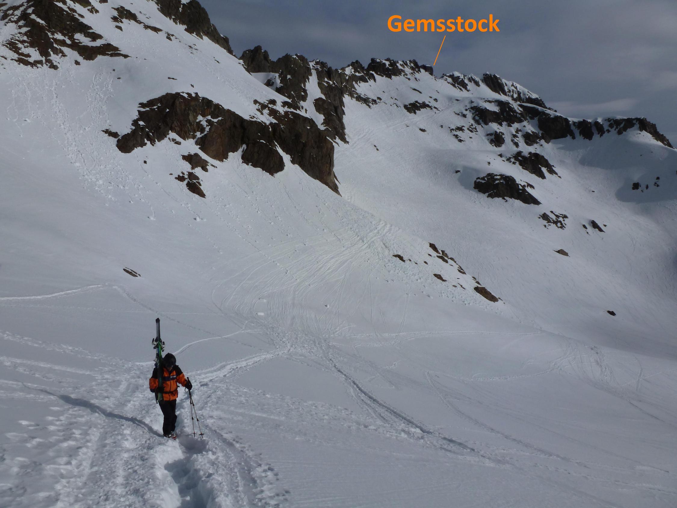 Schnee: in der Abfahrt vom Gemsstock und ab der Gafallenlücke hart. Ab Rotstock leichter Sulz. Ab Sellabödeli bzw. Gloggentürmli zuerst Pulver, dann Sulz. Insgesammt aber erstaunlich gute Schneeverhältnisse (Frühling mit Schattenpartien)!