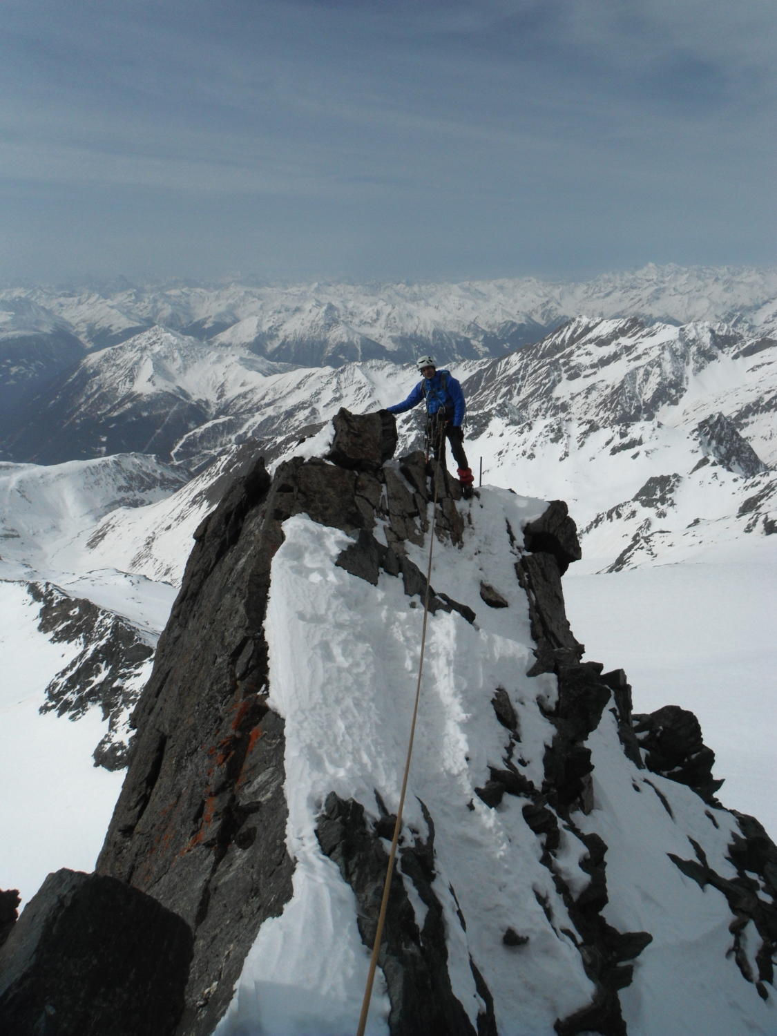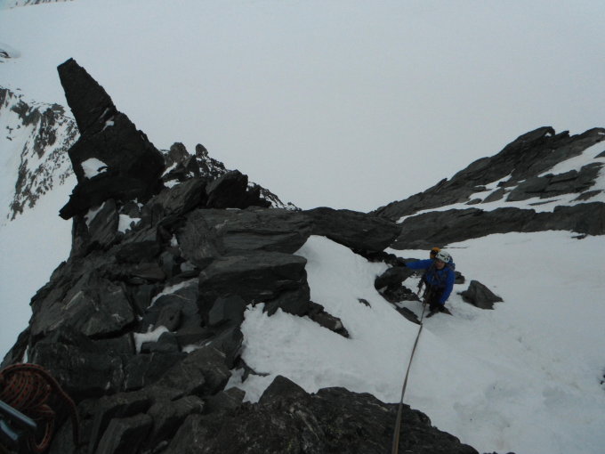 Der Stüdlgrat ist komplett eingespurt. Im unteren Teil recht wenig Schnee nach oben hin dann mehr werdend. Der Schnee ist im unteren Teil ganz nützlich um auch in den Flanken des Grats gut voranzukommen, im oberen Teil jedoch z.T. deutlich anspruchsvoller als im Sommer. Gerade die Platte der Hangelkante war durch die sehr instabile Schneeschicht darauf doch deutlich unangenehmer zu klettern als im Sommer. Trotzdem ist der Stüdlgrat z.Z. gut machbar! Vor allem kann man endlich mal einen solchen Klassiker einsam genießen, wir waren die einzige Seilschaft am Grat!!! Das gibts sicher selten! Zustieg über das Teischnitzkees unproblematisch, Gletscher gut eingeschneit. Abstieg über Kleinglockner, schneegefüllte Rinne runter auf den Ködnitzkees gut zu gehen (dadurch spart man sich den Klettersteig an der Adlersruhe). Der Ködnitzkees ist ebenfalls gut eingeschneit.