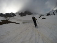 Im Aufstieg einige Tragestrecken. Wir mussten mehrere abgegangen Lawinen überqueren. Aufstiegspur vor dem Morgetenpass war von Lawine verschüttet. Schwere Arbeit beim Spuren..