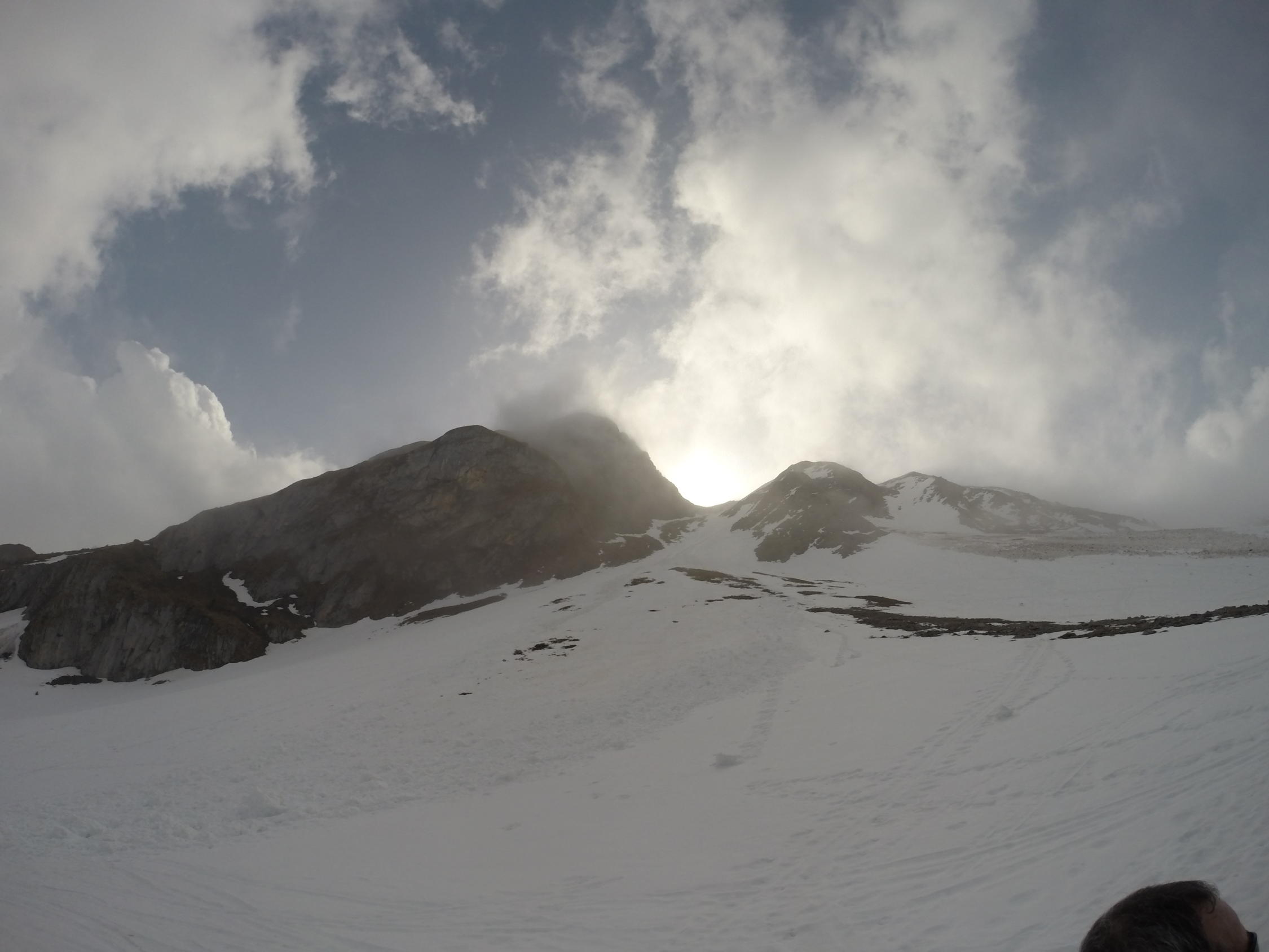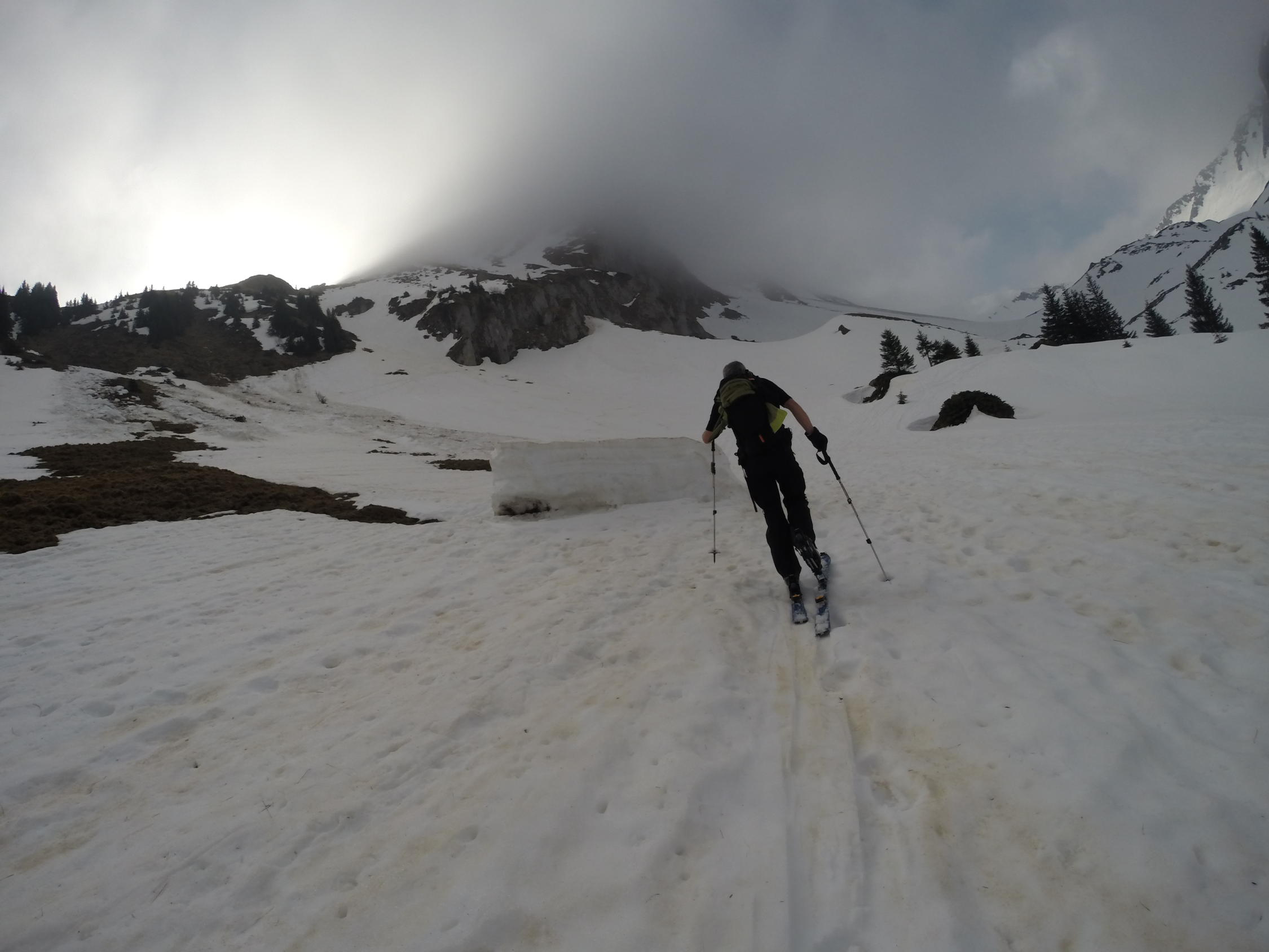 Im Nordcouloir noch genug Schnee, aber abgegangene Lawinen die den Fahrspass etwas getrübt haben.