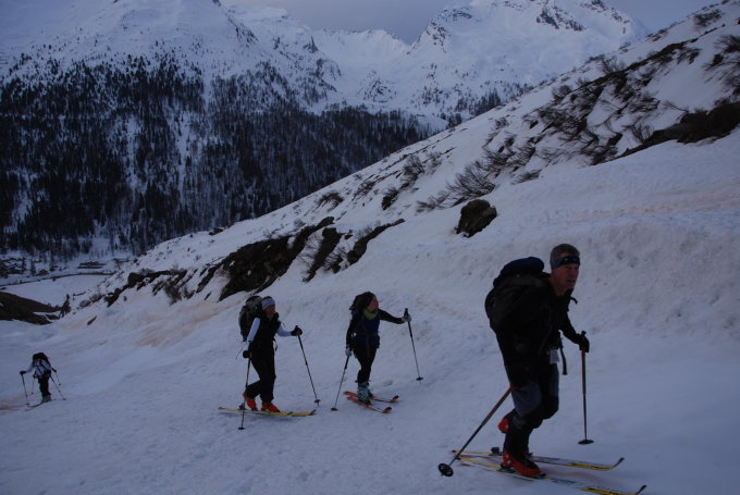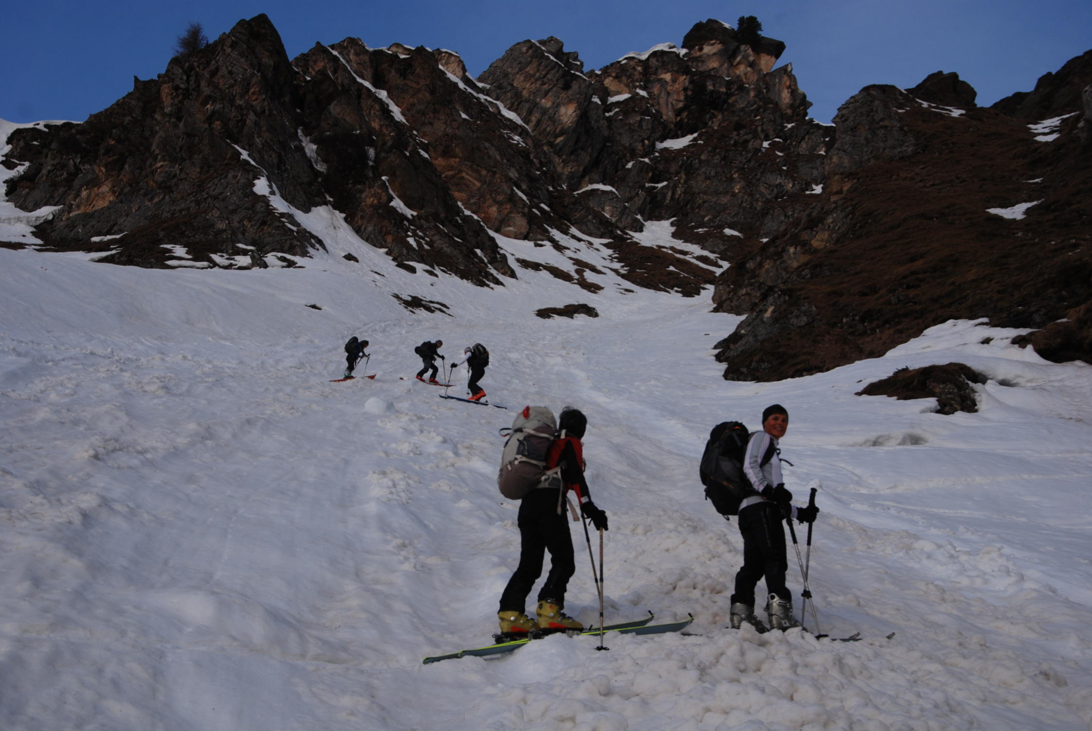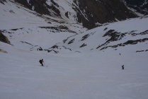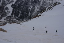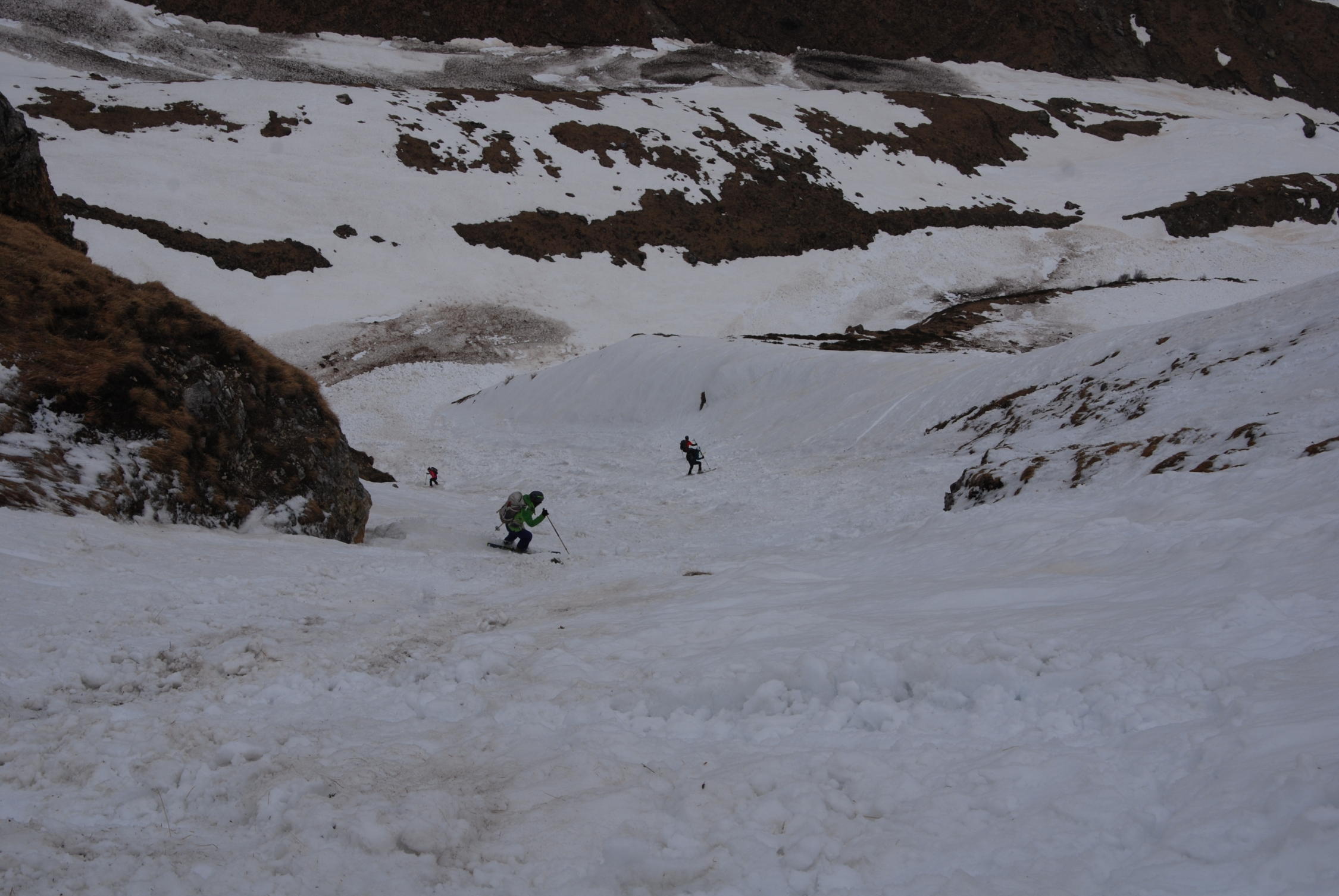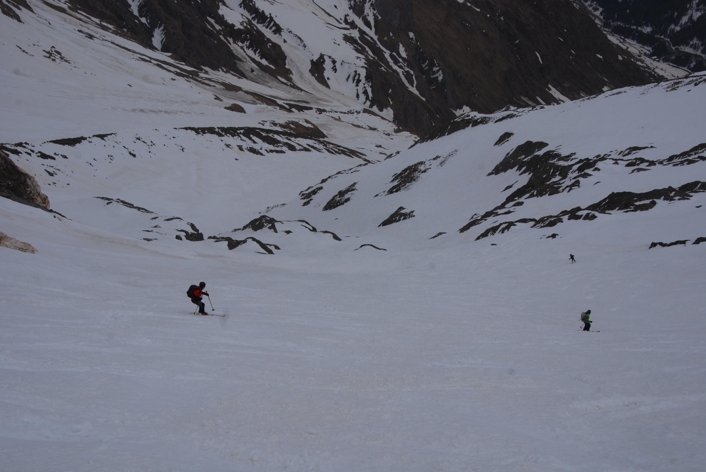 Da es gestern über Nacht bewölkt war, war der Schnee nur im oberen Teil gefroren. Bei der Abfahrt gegen 12.00 Uhr war er etwas weich und passabel zu fahren. So ging es bis im unteren teil. Da war er sulzig und schwer zu befahren.