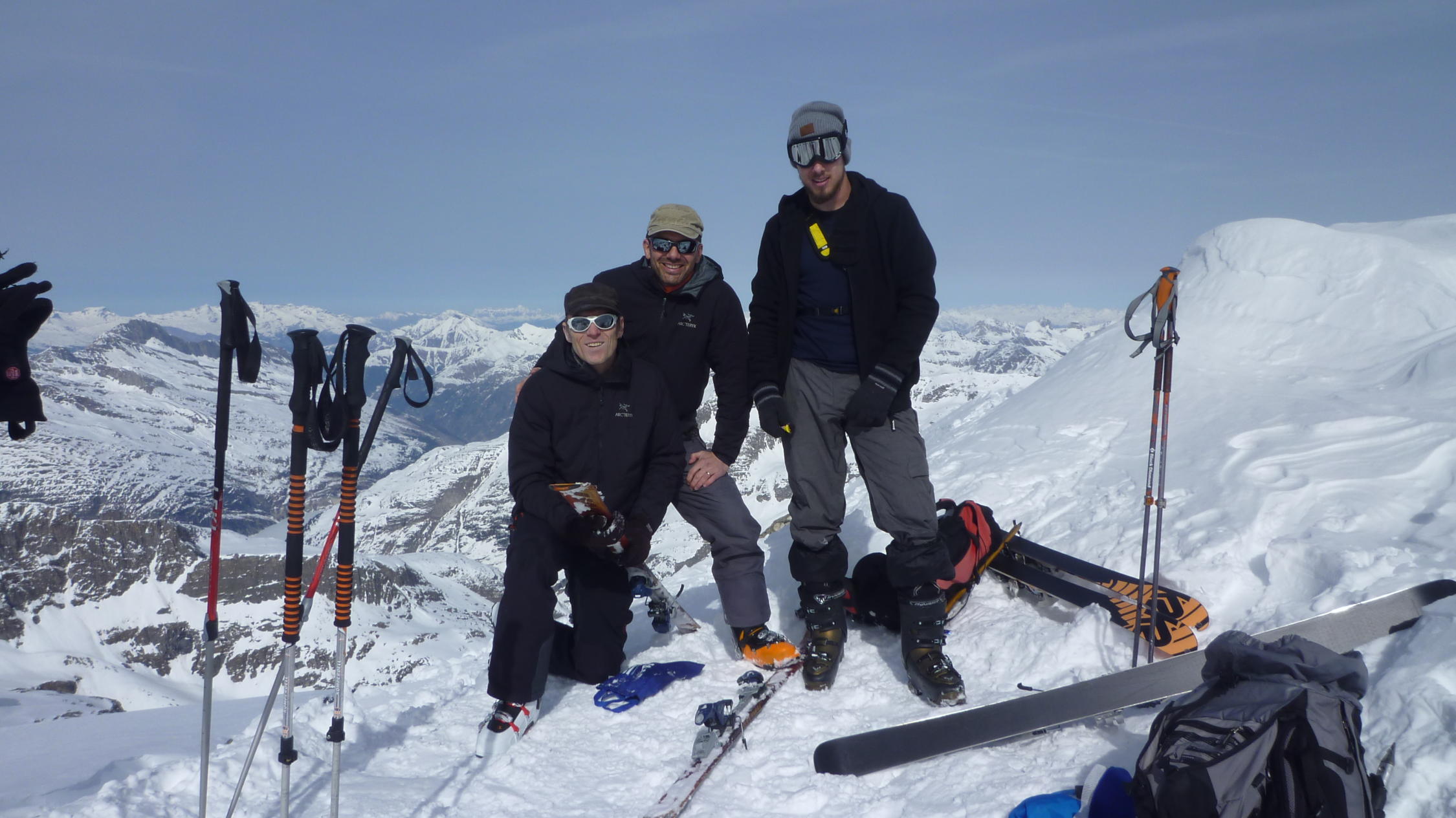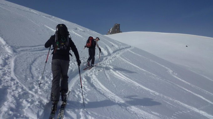 gute Schneeverhältnisse. Nachdem wir die Route zum Furggelti verlassen haben, durften wir in schönen Pulver spuren. Abfahrt nach der Lücke hart. Aufstieg über den Güfergletscher mit guter Spur versehen.
