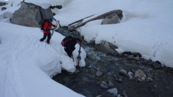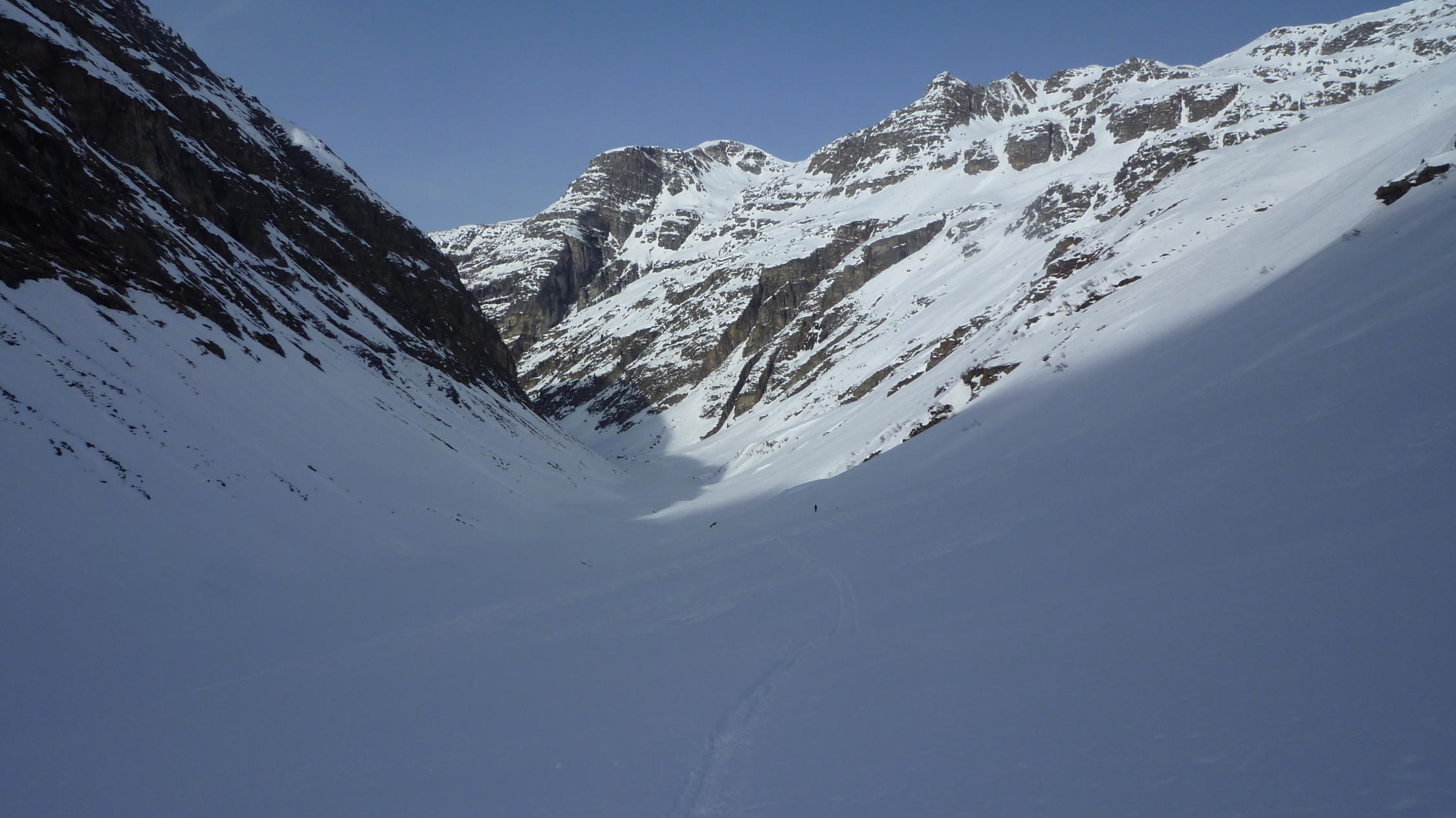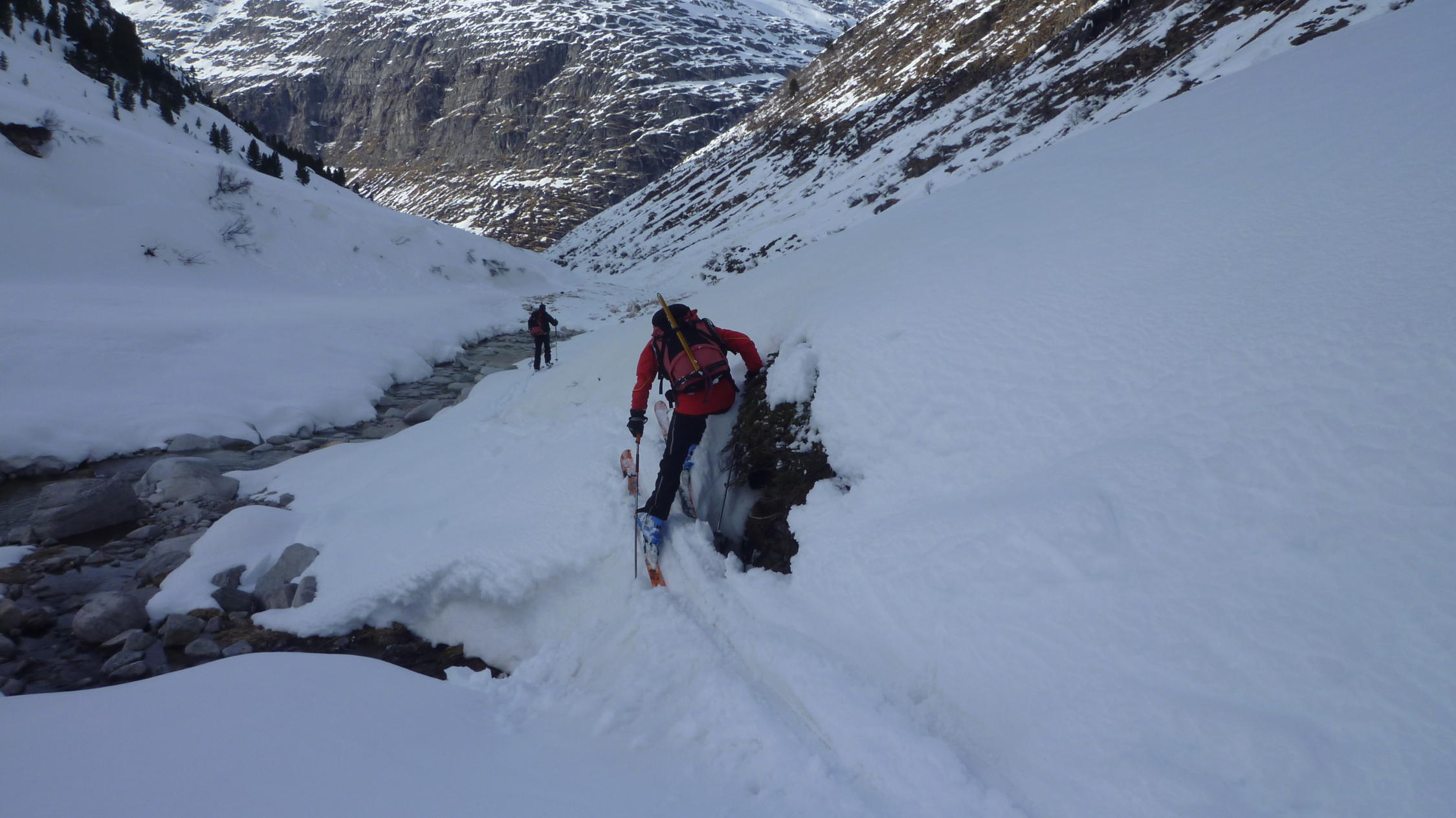 Warten etwas spät dran und haben uns deshalb zur Abfahrt ins Canaltal entschlossen. Die Spur im flachen Talgrund lief einwandfrei bis zur Brücke. Sollte sie nicht laufen - wird es bitter !