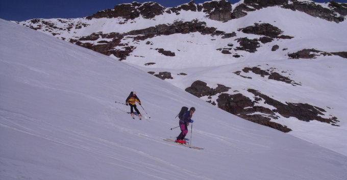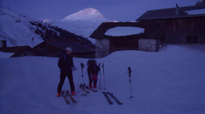 Am Beginn der Skitour in Hinterrhein wenig Schnee. Ab 2000 MüM geschlossene Schneedecke. Abfahrt vom Gipfel um 10:00 Uhr mit guten Sulzschneeverhältnissen bis ins Tal.