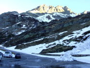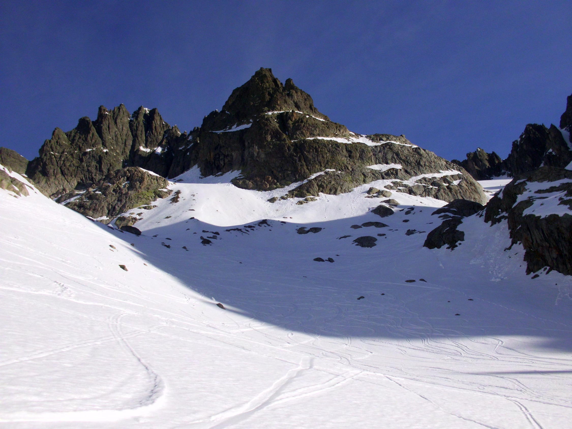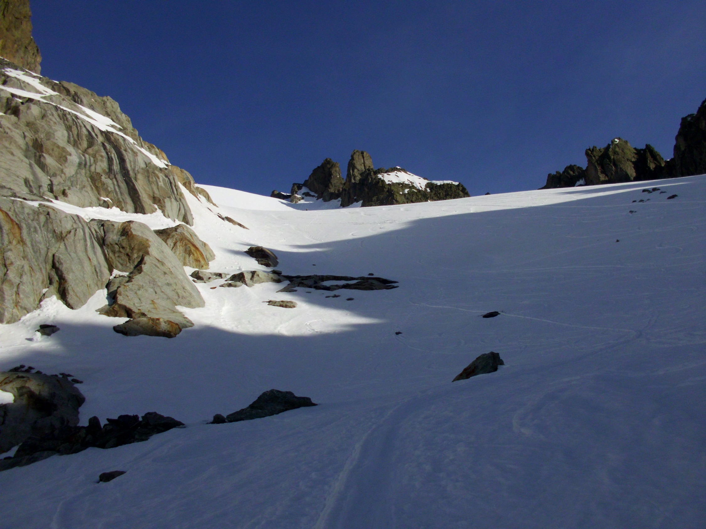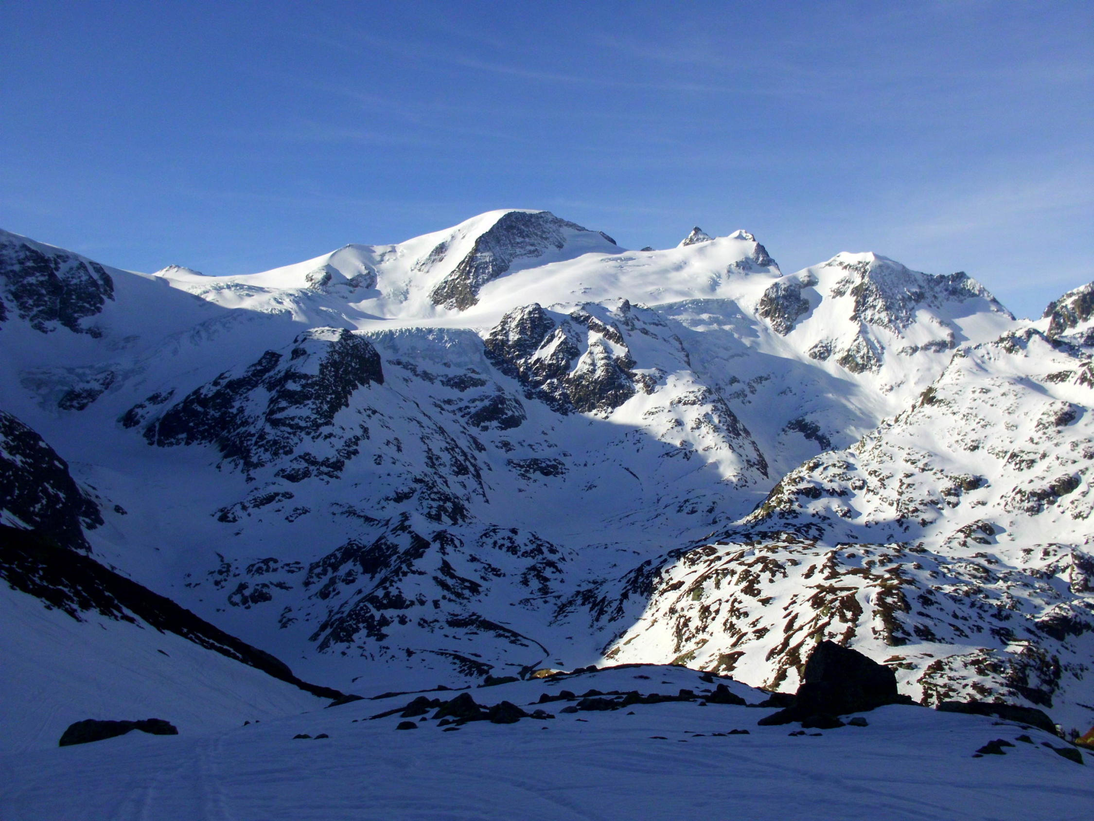 Im Aufstieg harte, gefrorene Spur, ab rund 2800m schon recht sulzig (11uhr).