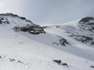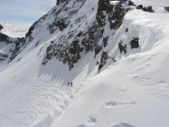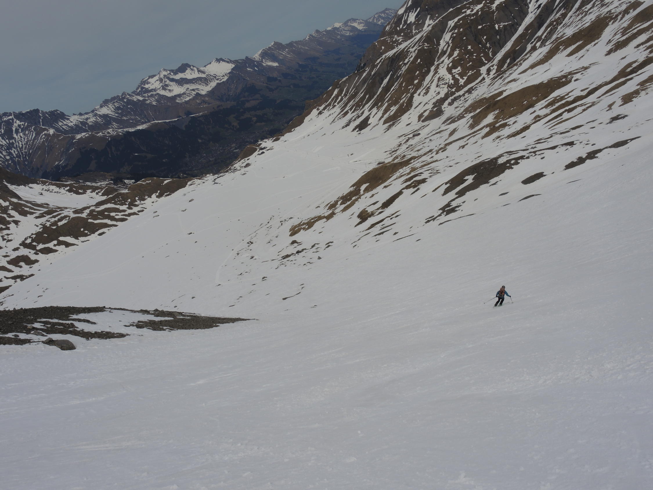 bis unterhalb Frühstücksplatz Firnschnee, dann pistenartig (gepresster Schnee)