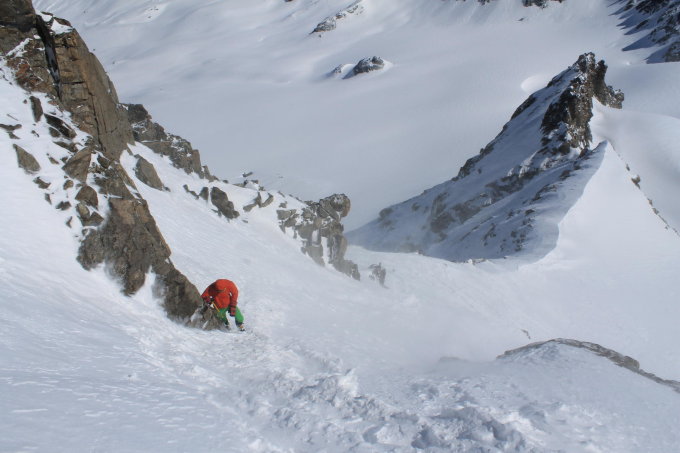 Kalt, schön, aber windig. Etwas Neuschnee, der an noralgischen Stellen eingeblasen ist. Aufstieg bis 5 m unter Scharte mit Schi. Dann über Gletscher bei Presspulver zum Einstieg. Schlussstück mit Pickel und Eisen bei guter Spur schön zu steigen. Ca. 10 Meter mixed Bereich kurz unter Gipfel verlangt Konzentration, einige haben gesichert. Abfahrt mit einigen Grasschieinlagen bis Madulein. Heute kalt, um 14.00 noch super zum Fahren.
