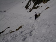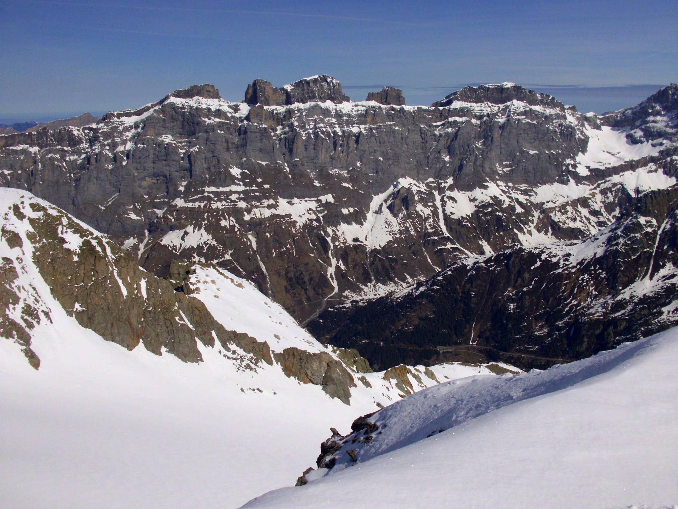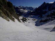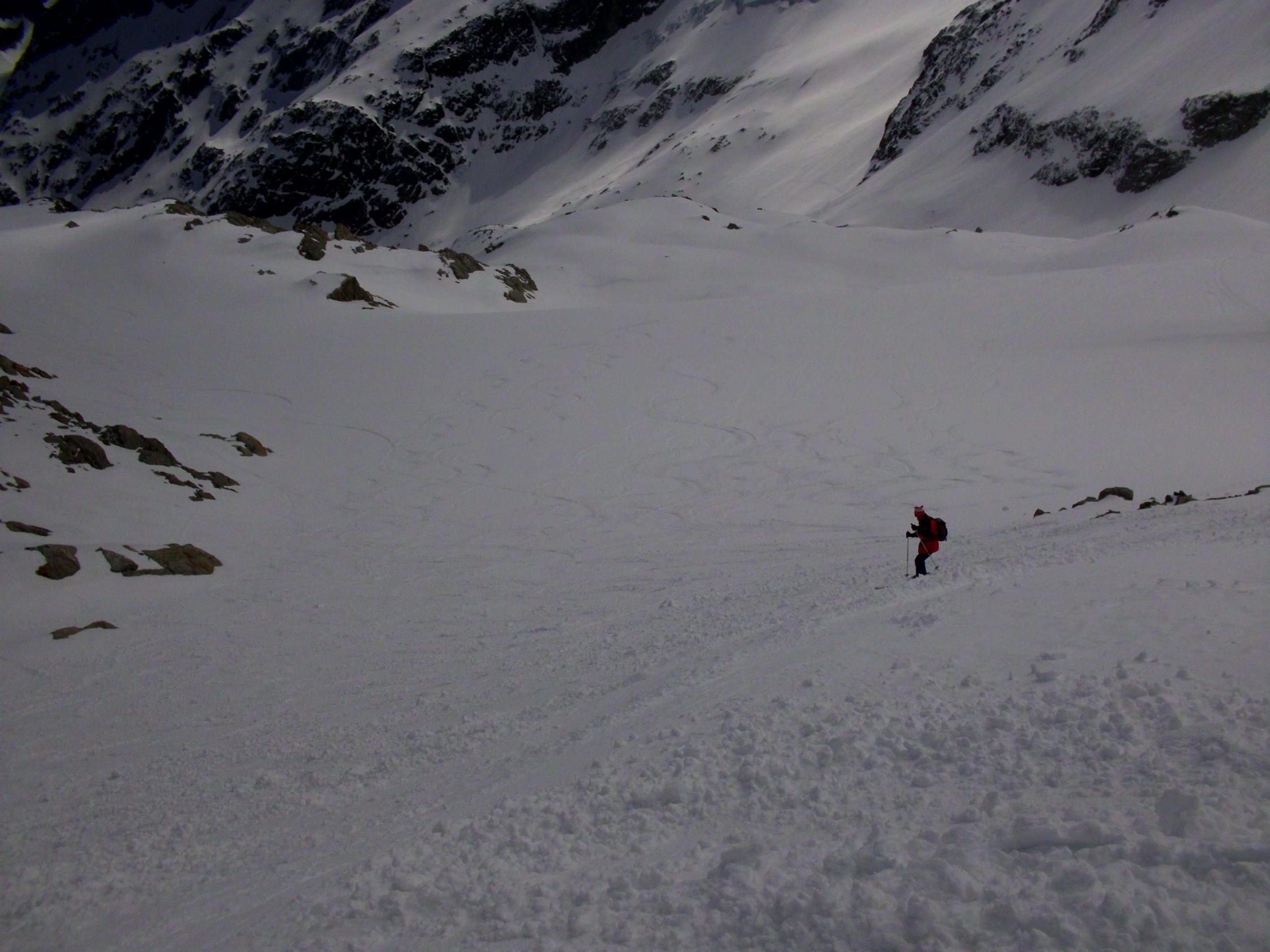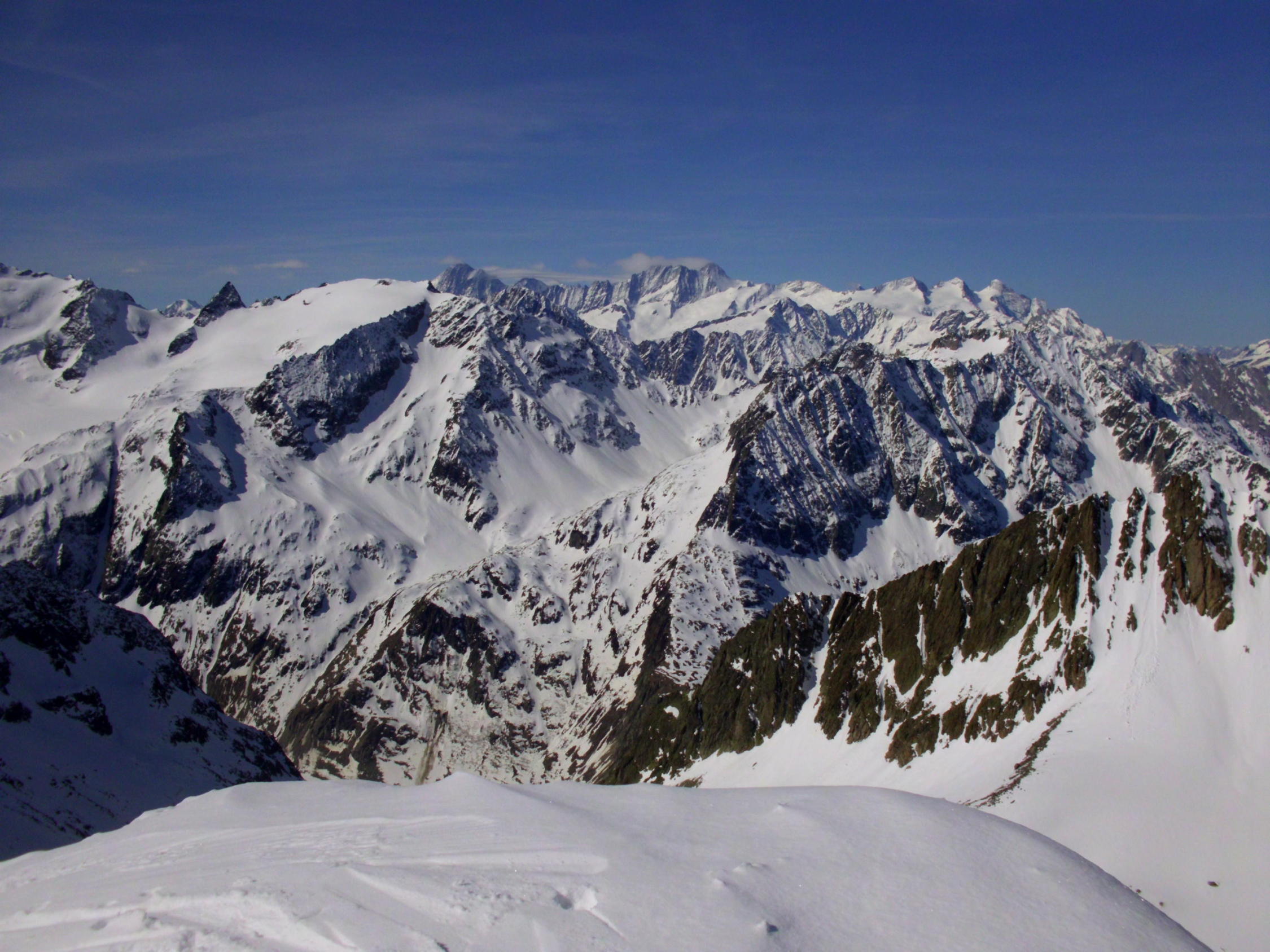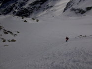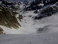 Abfahrt schöner, im oberen Teil nur leicht anfesulzter Frühlingsschnee. ab ca 2200m tiefer, z.t schon etwas matschig.