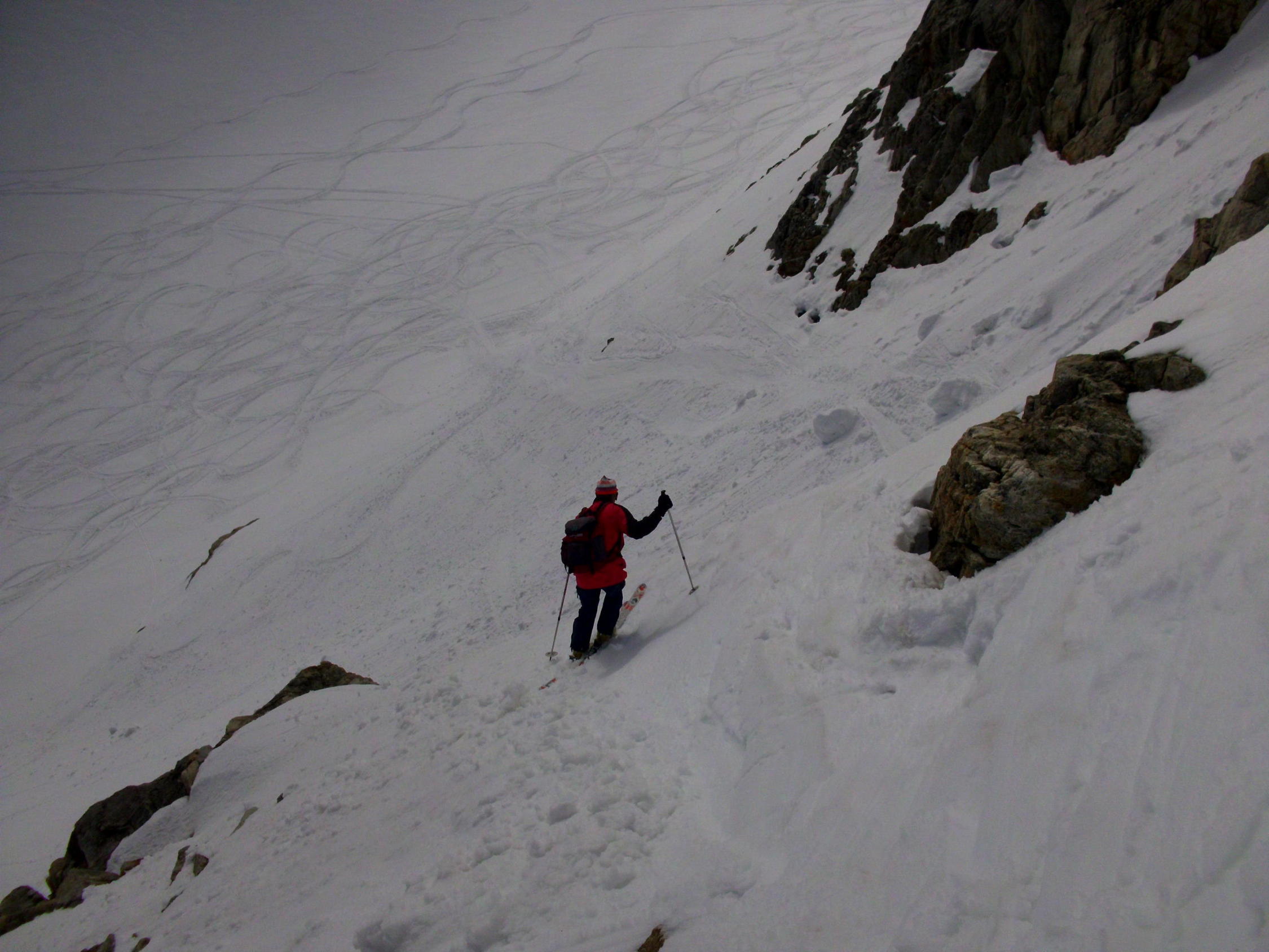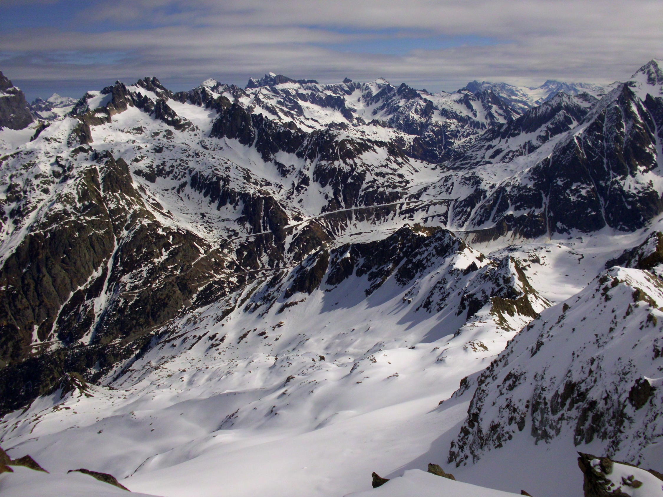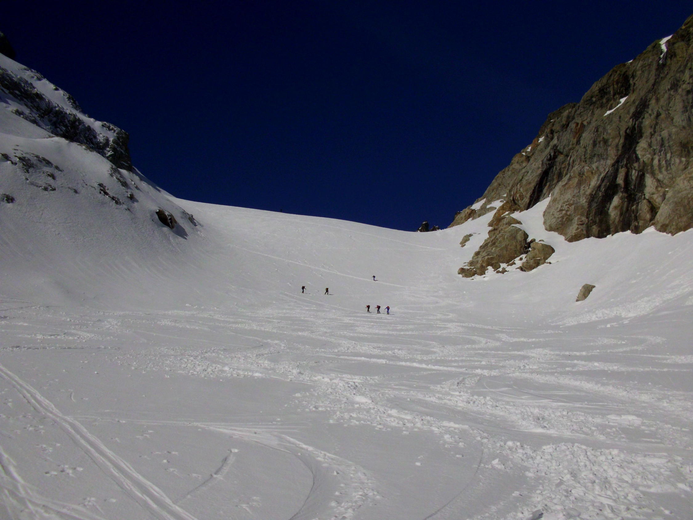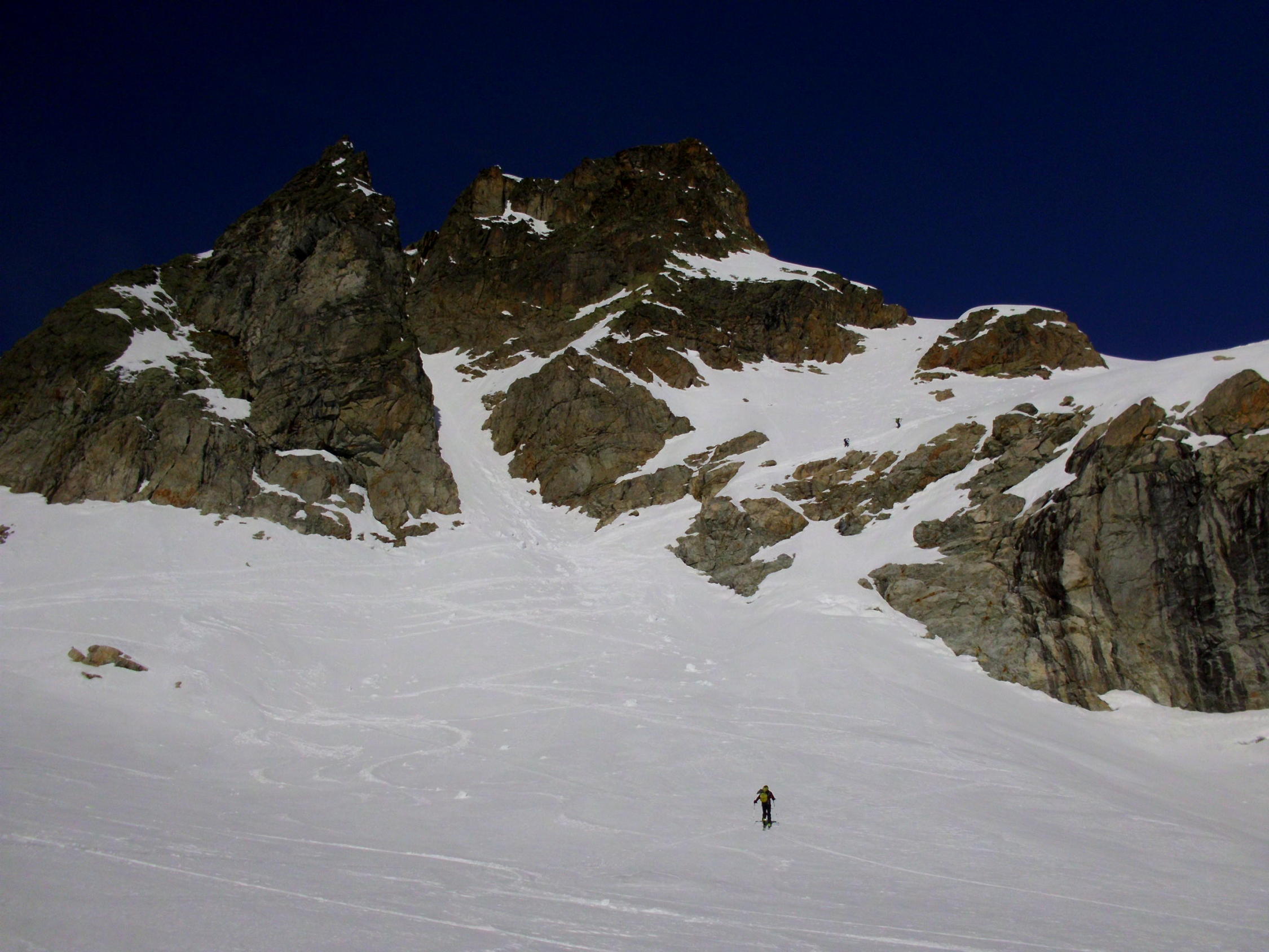 Abfahrt schöner, im oberen Teil nur leicht anfesulzter Frühlingsschnee. ab ca 2200m tiefer, z.t schon etwas matschig.