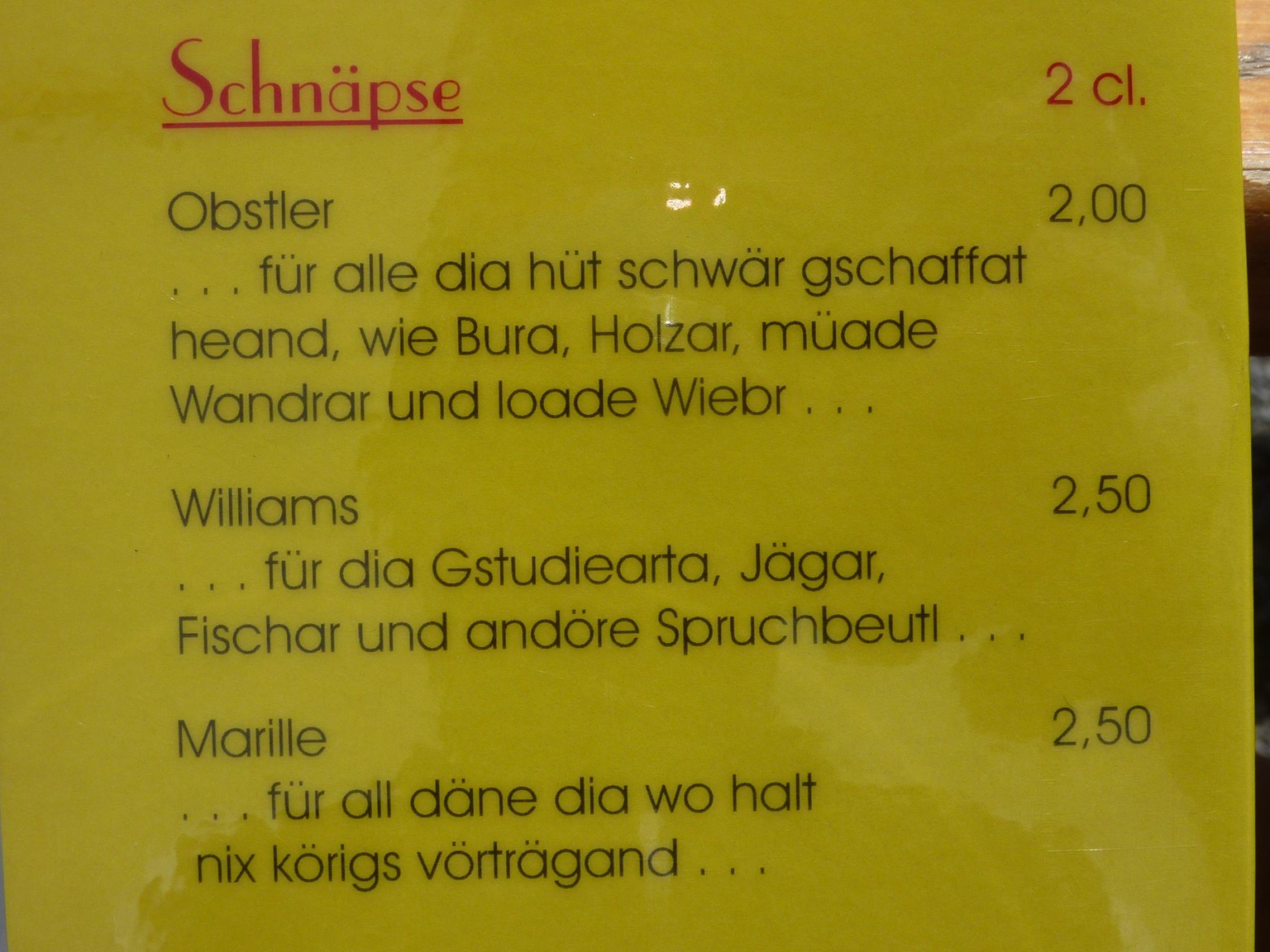 Die Einkehrmöglichkeit auf der Emser Hütte sollte man wahrnehmen. Beachte die Getränkekarte (siehe Foto).