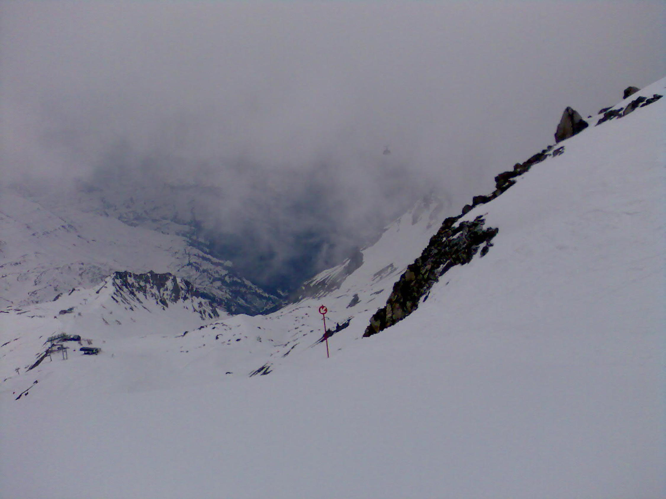 Im Nebel zurück zur Mittelstation Valluga.