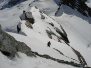 Start um 9.45 Uhr beim Klein Matterhorn bei angenehmen Temperaturen. Gletscher recht gut eingeschneit, beim Aufstieg zum Breithornzwilling West musste eine Spalte überwunden werden , Fussaufstieg zu den drei Gipfeln schöner Trittschnee, heute nur mässig Wind aus Nord zeitweise auch total Windstill, Abfahrt Schwärzegletscher nach Zermatt zur Zeit auch gute Verhältnisse, immer noch genügend Schnee bis Zermatt.
