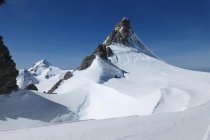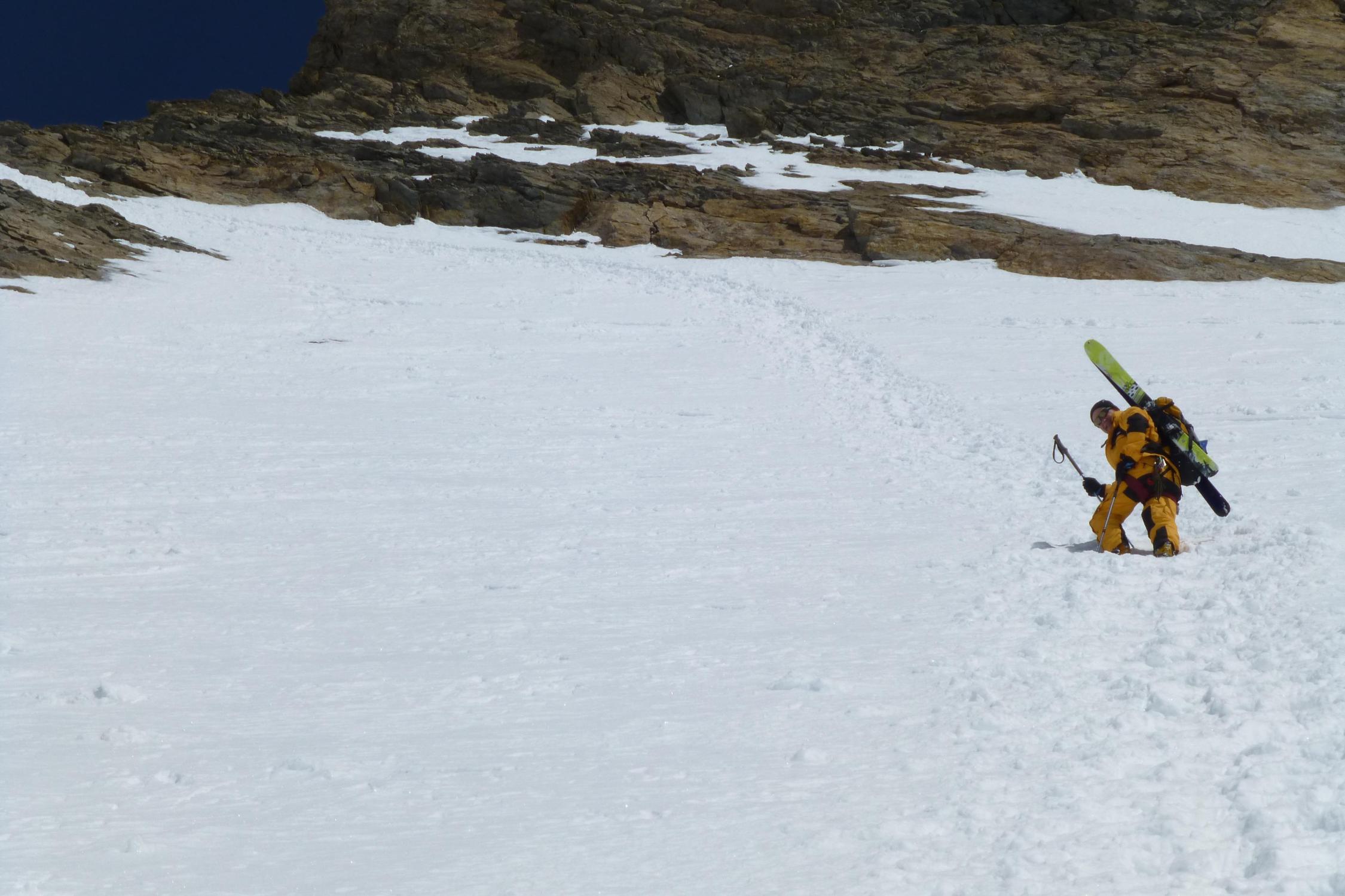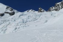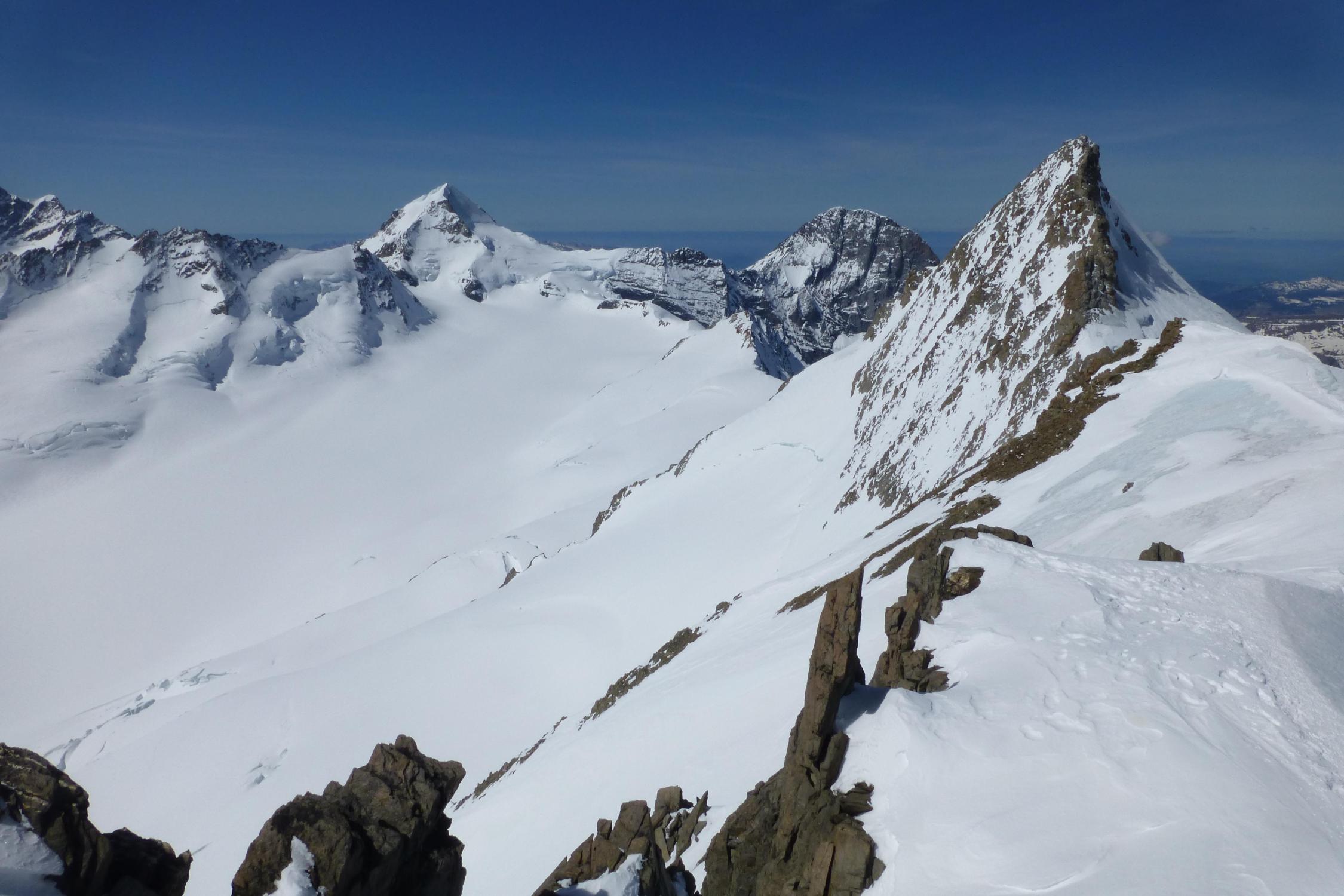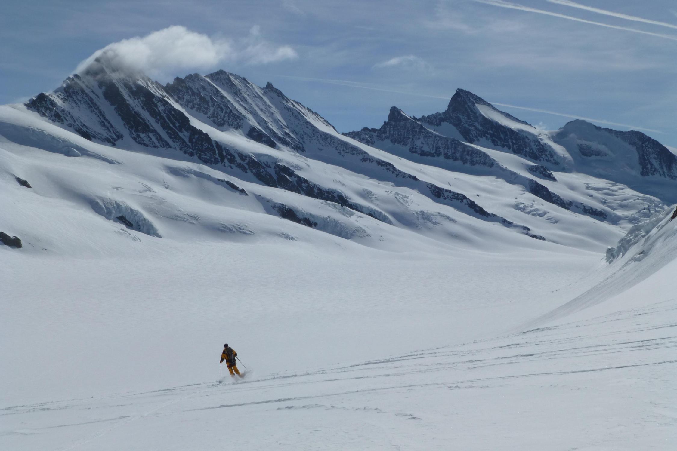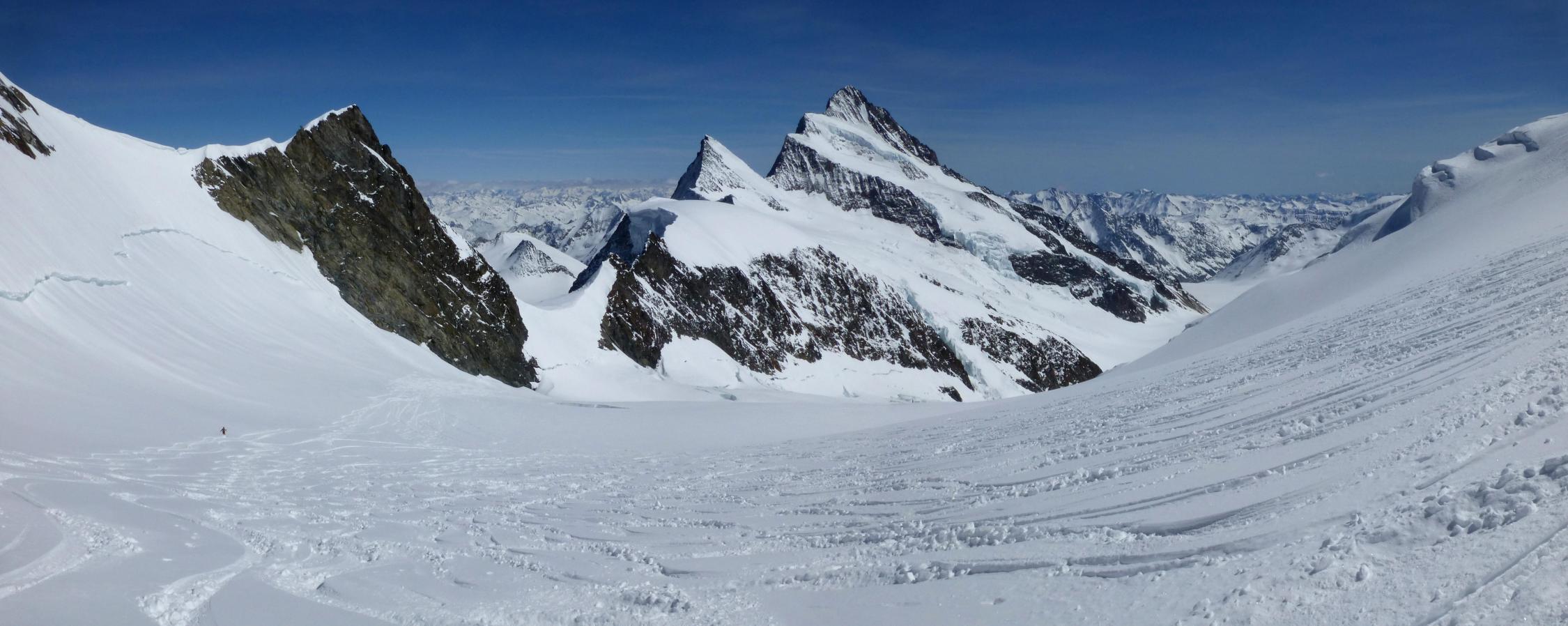 Perfekte Verhältnisse! Dank guter Spur in der Rinne problemlos zum Fieschersattel. Dann hinauf zum Gipfel über den Nordgrat der schwieriger aussieht als er ist.
