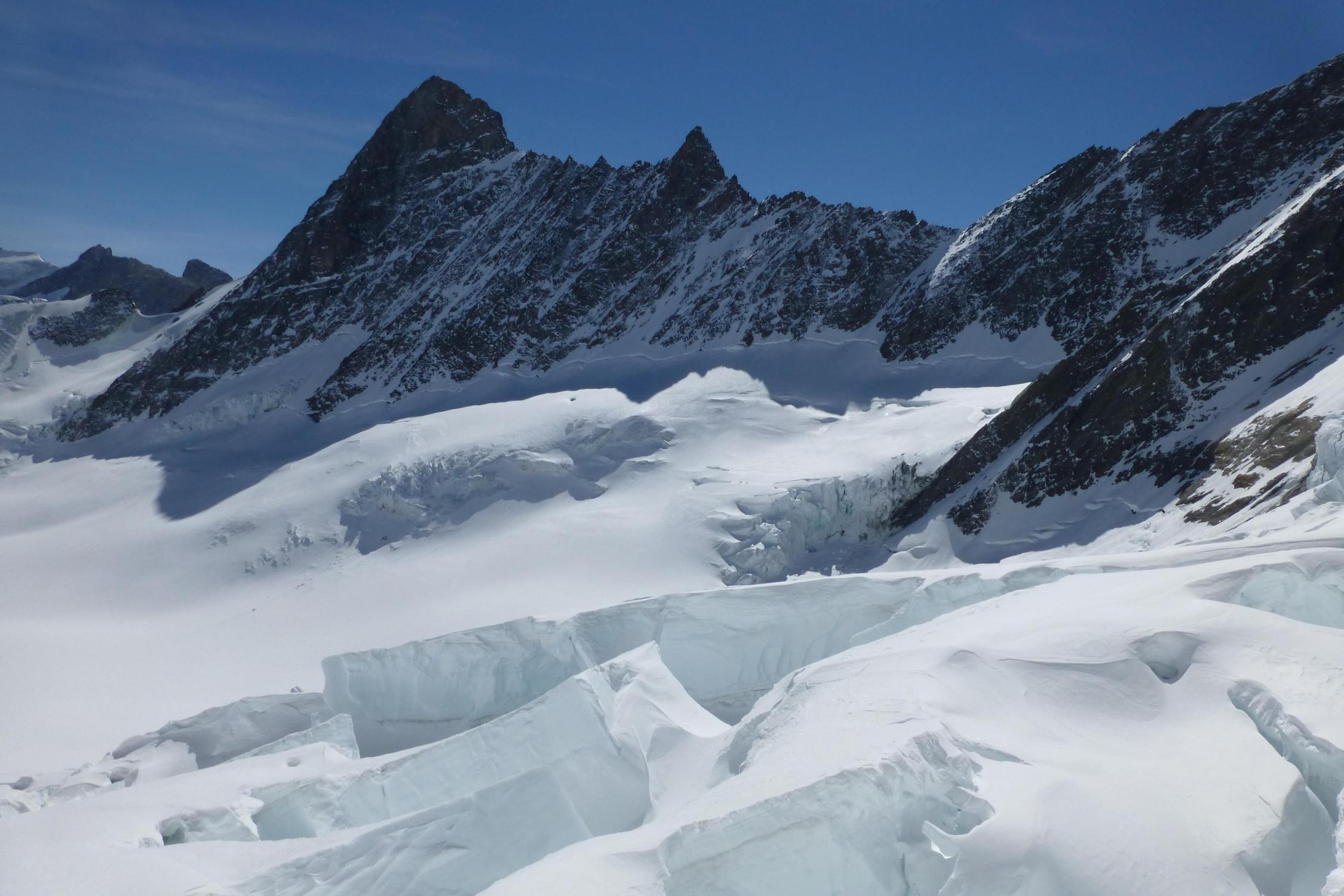Hinter Fiescherhorn (4025m): Jungfraujoch über Ewig Schneefeld