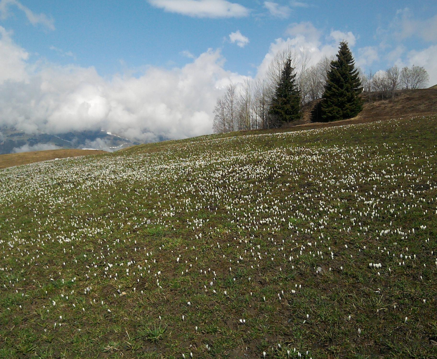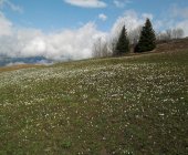 Anfellen etwa bei Pt. 1464. Auf der beschriebenen Route heute leicht in 1:45 zum Gipfel. Abfahrt um 11:00 vom Gipfel in schönstem Sulz bis Talstation Sessellift Pt. 1585. Rest des Abstiegs über blühende Wiesen zu Fuss.