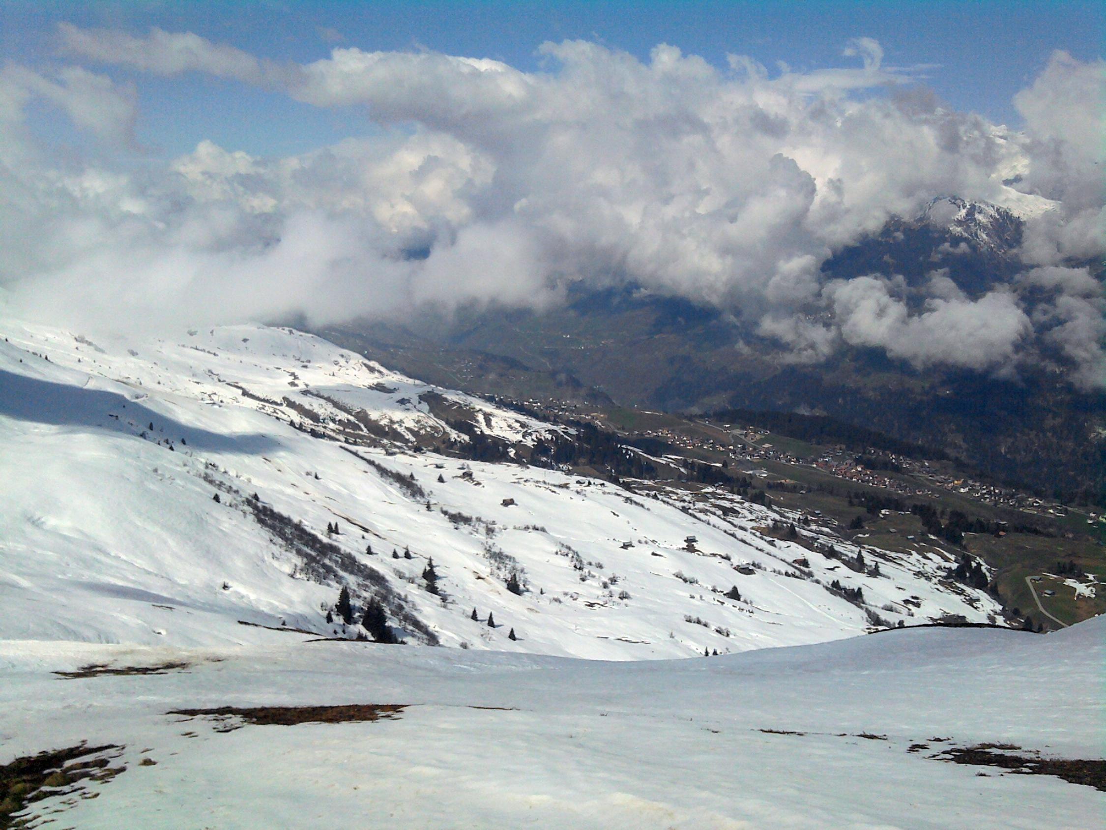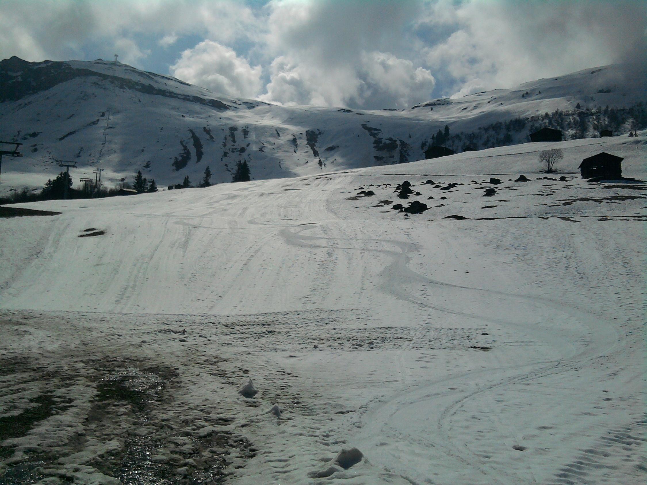 Schneegrenze heute in der unteren Surselva für durchgehende Schneedecke nordseitig auf ca. 1600m, südseitig auf ca. 1800m. Ab Cuolm Sura vermutlich noch ein paar Tage machbar.