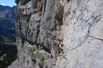 Wer als nächste Seilschaft einsteigen will, kann ein Messer und etwas altes Seil mitnehmen und die teilweise schon arg beanspruchten Schlingen an den Standplätzen ersetzen! Vielen Dank!!
