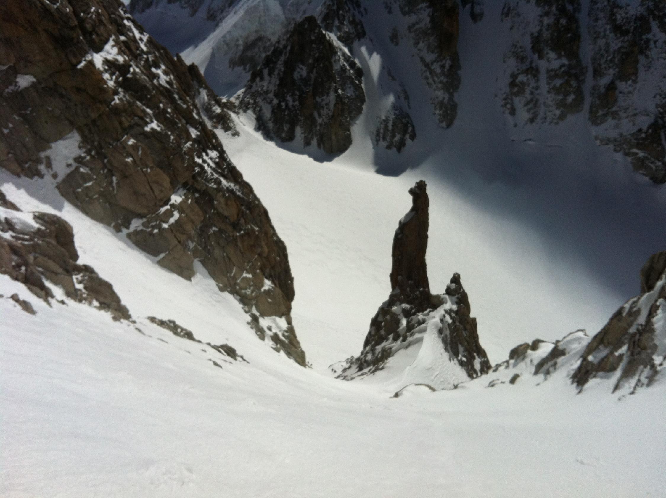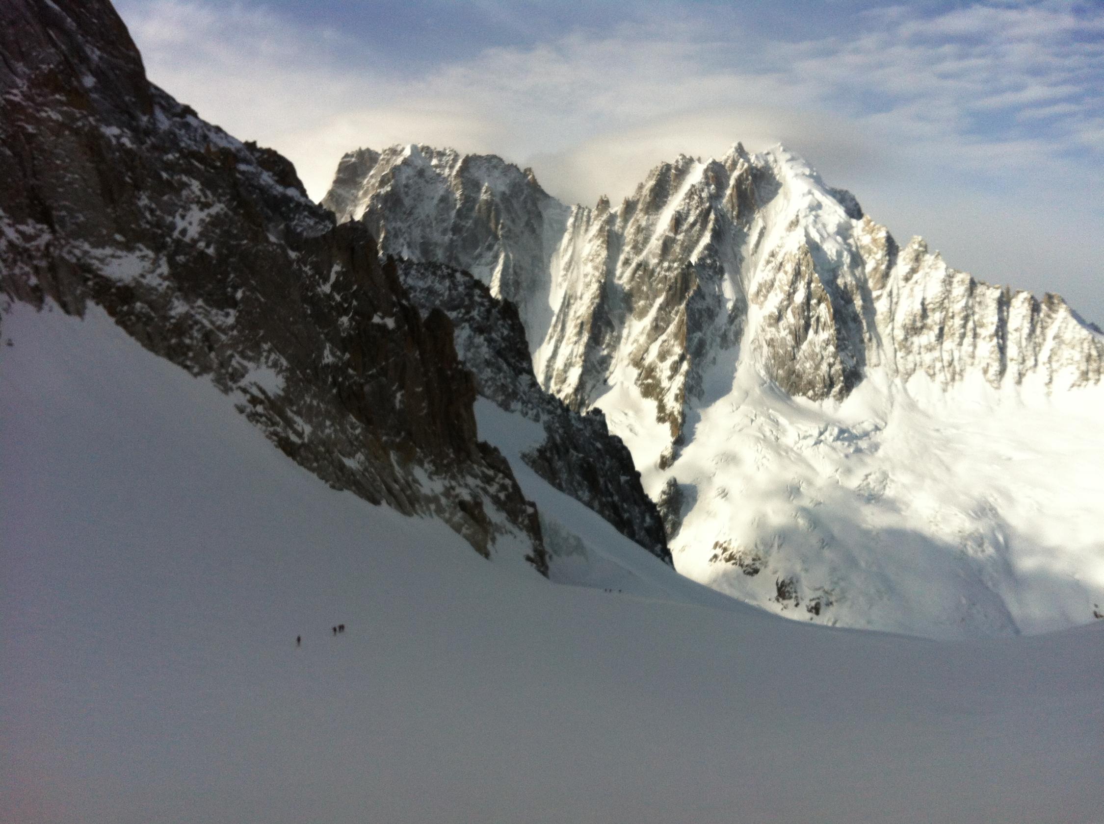 Allgemein Verhältnisse im Argentiere Becken: Courtes NE wurde gemacht, ebenso Aig. Carée N, Col d'Aiguille Verte & Couloir Couturier grossteils blank und nicht fahrbar.