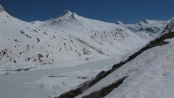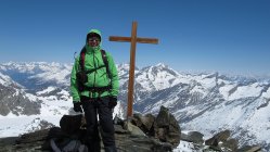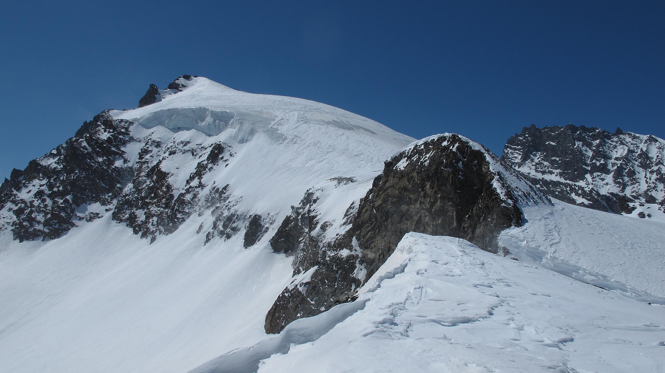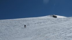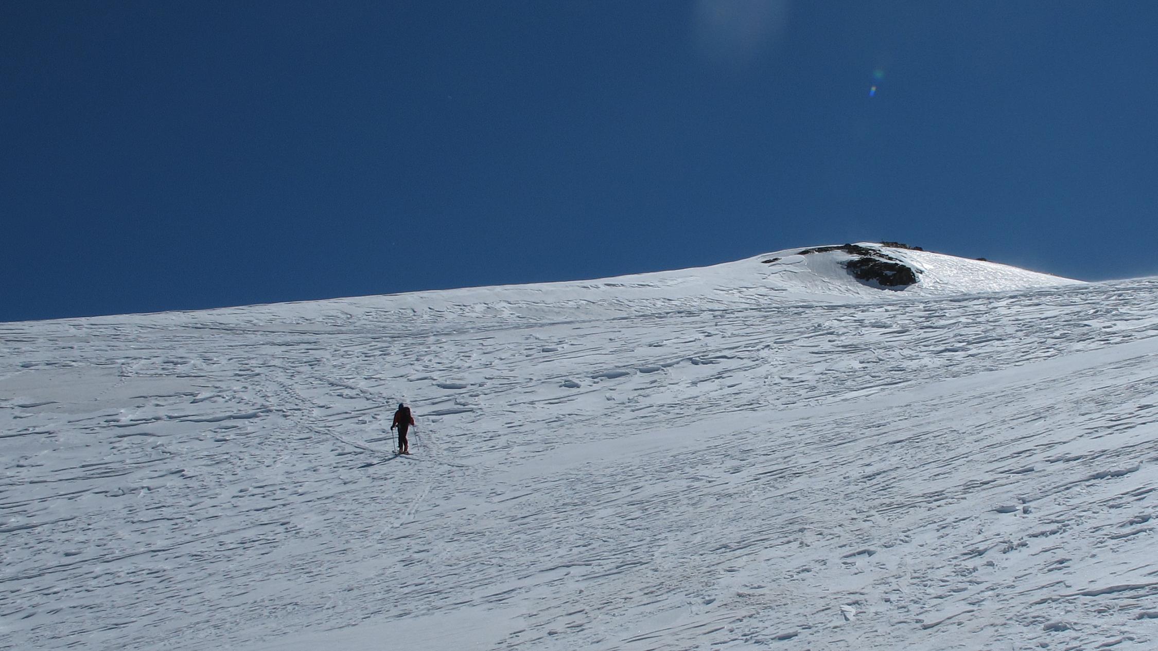 Am Gipfel böiger Wind und saukalt. Abfahrt hart, erst ab 3000m etwas weicherer Schnee.