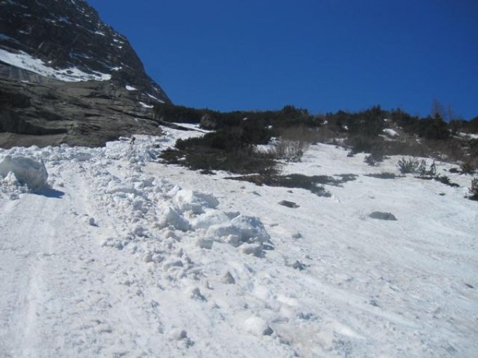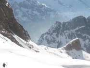 Abfahrt zwischen 10 und 11 Uhr war bei den heutigen Temperaturen ideal. Es lohnt sich rechts vom Lawinenkegel beim Ärlenbach aufzusteigen. Wir sind heute mit den Steigeisen das Couloir auf den hinaufgestiegen, falls es wärmer wäre, gehts auch ohne.