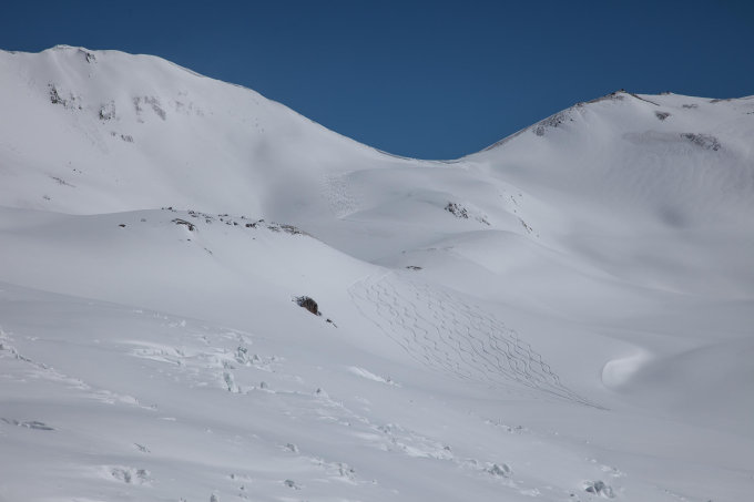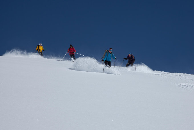 10 bis 30 cm Neuschnee, welcher sich auch SE seitig bei der Bergüner Furgga als bester Pulver zeigte.Sind somit etwas weiter abgefahren, und diese Zeit fehlte am Schluss für die Besteigung des Hauptgipfels. Unterhalb des Ducan Fürrgli überdeckt der Neuschnee ein Geröllhang, hier ist vor Tagen respektive Wochen ein Schneebrett abgegleitet. Über den steilen SW Hang zum Skigipfel 3021, wobei ein paar Treibschneeplatten zur Vorsicht mahnen. Die Abfahrt durch das NW Couloir dann im meist besten Powder, ja ja, der April, der macht halt was er will.