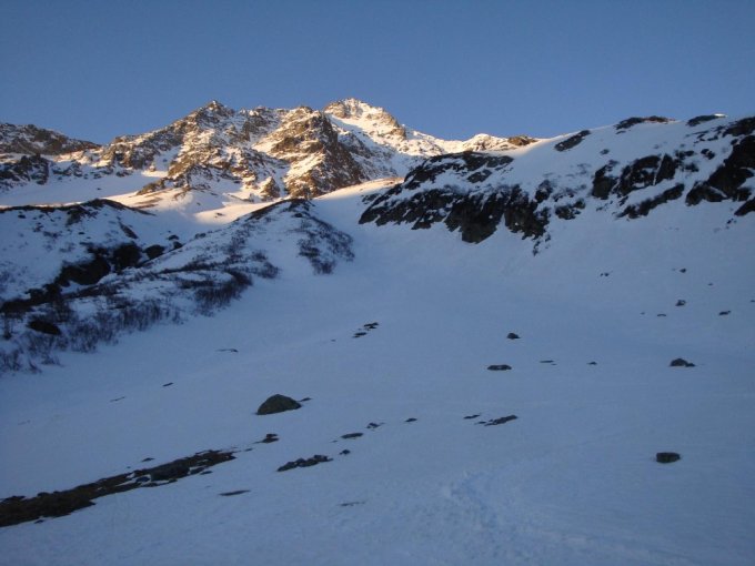 Sind um 6:15 los in Gorezmettlen. Zu Fuss zur Brücke 1646m. Danach mit Skiern und Harsteisen hinauf. Steil und anstrengend bis zum Grissenfirn, danach angenehmer bis zum Couloir. Nun wieder anstrengend zu Fuss das Couloir hochspurend zum Grat. Immerhin guter Trittschnee. Dann Abstieg auf den Tschingelfirn. Erneuter steiler Aufstieg über diesen, hier auf 2900m hat mein Kumpel genug und die Segel gestrichen. Er gönnt sich in der Sonne die verdiente Pause, während ich mich weiter über die harten Hänge hoch zum Skidepot auf etwa 3200m werke. Hier noch einmal anstrengend mit Pickel und Steigeisen bis auf den höchsten Punkt des Stucklistock 3313m. Die letzen Meter zum Gipfel sind noch einmal etwas heikel, über eine senkrechte Wächtenkante geht es zum Gipfelsteinmann hoch. Tolles Panorama bei mässigem Wind am Gipfel. Abstieg retour zum Skidepot und nun recht gute, nicht allzu harte Abfahrt über den Tschingelfirn auf dessen Boden hinunter. Jetzt noch ein etwas ätzender Wiederaufstieg zum Couloirstart auf etwa 2980m. Nun als Belohnung in guten Abfahrtsverhältnissen durch das 300m Culi hinab gerockt. Zuerst noch weiter in tragendem Harstdeckel, danach ab 2400m in besten Sulzverhältnissen ins Tal zurück. Hammertour, darf man schon sagen. Wirklich anhaltend steile, anspruchsvolle und interessante Skitour.