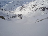 Abfahrt: Ca. 12 Uhr ein schönes Wetterfenster mit Sonnenschein "erwischt". Die steile Westflanke war zwar noch knochenhart aber ab der Fellilücke dann traumhafter Sulz bis zum Pass, wie er besser nicht sein kann.