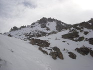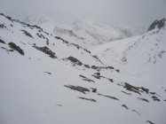 Weiterhin gut machbar. In der ersten Steilstufe, kurz nach dem Start, ist die Schneeauflage schon recht dünn.