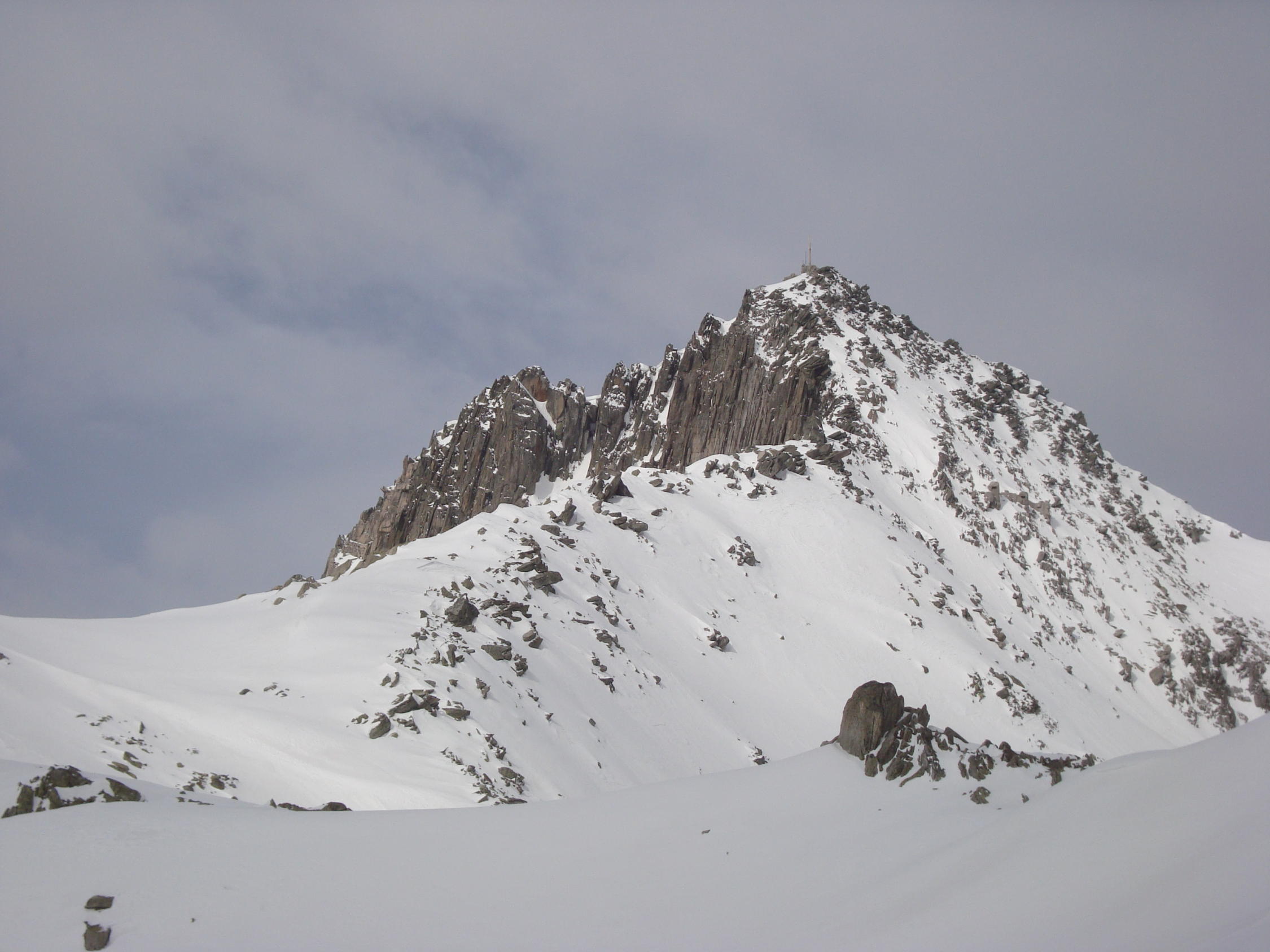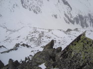 Die Kletterei vom Depot zum Gipfel geht auch gut ohne Hilfsmittel. Ich hatte den Pickel mit, hätte ihn aber nicht gebraucht.