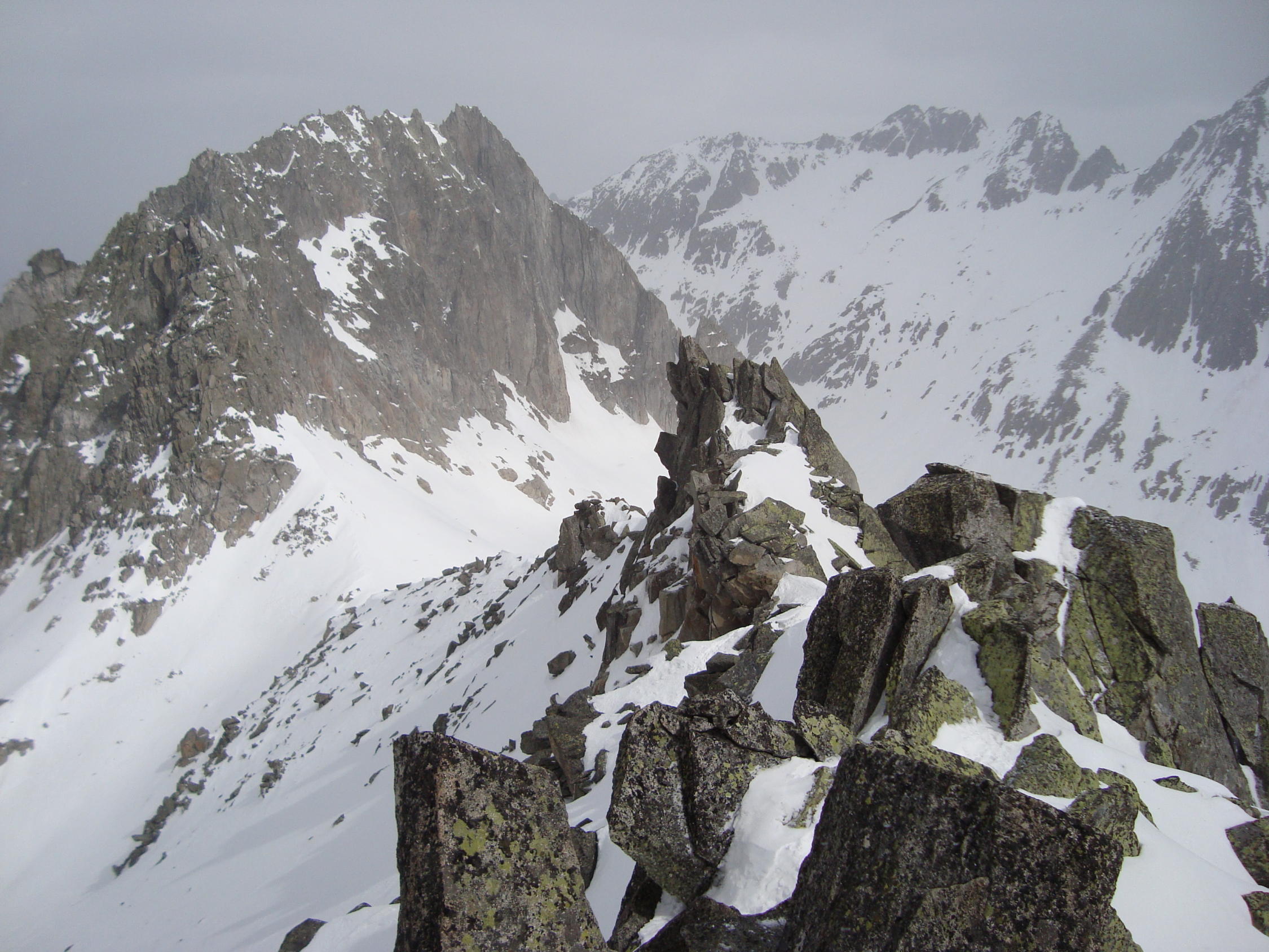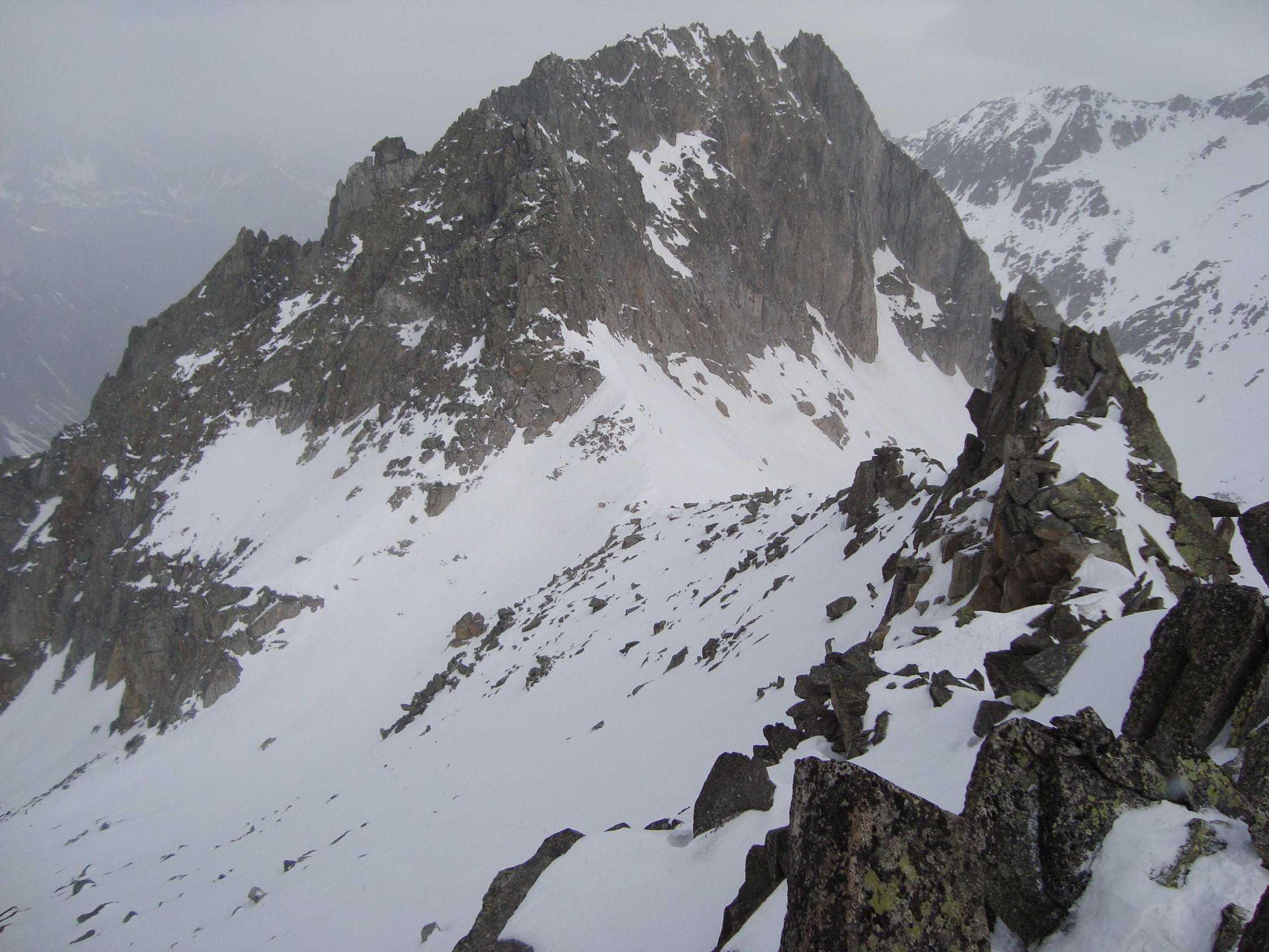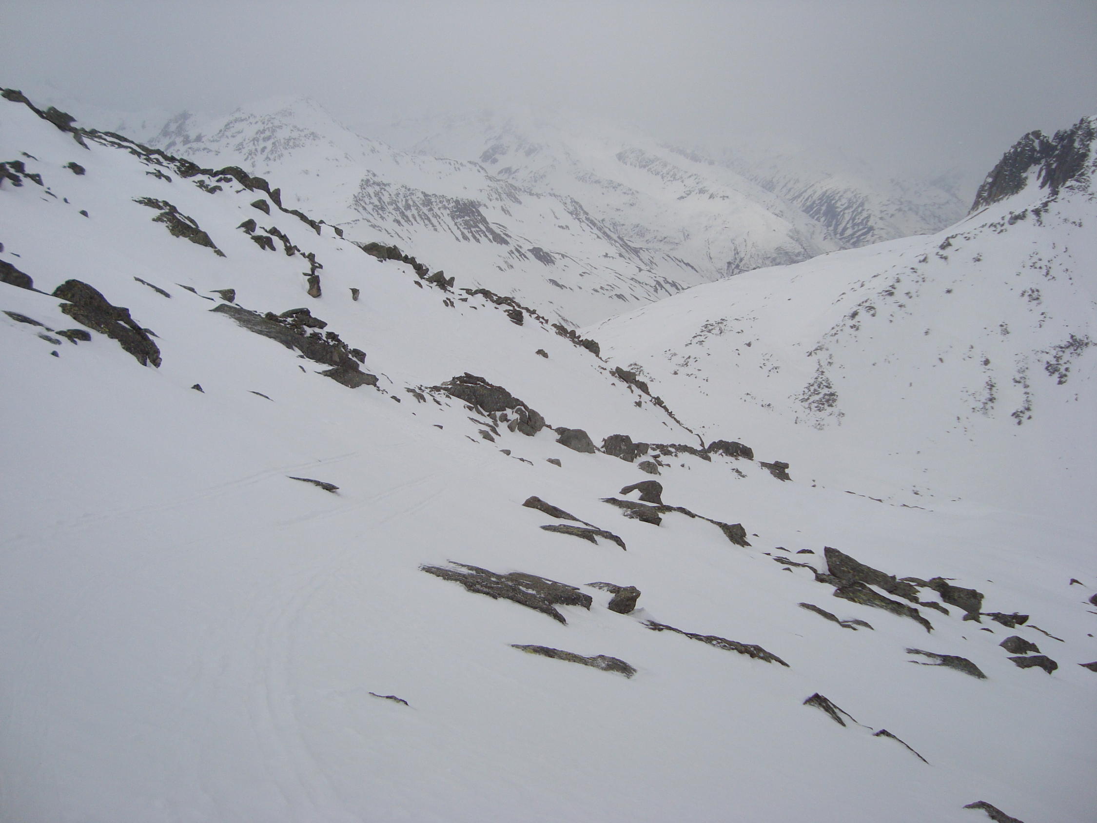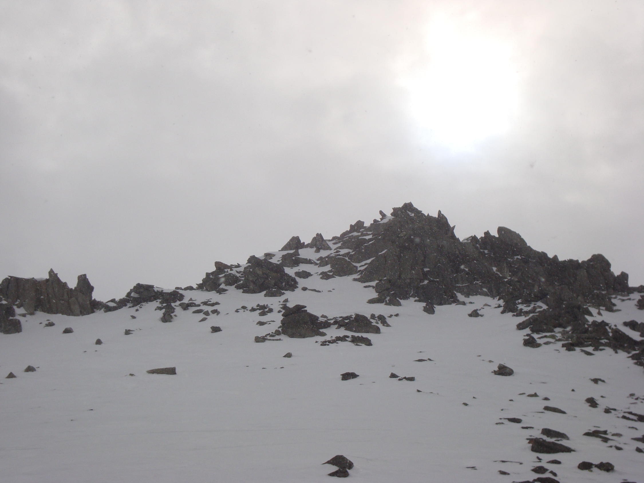 Aufstieg: pickelhart gefroren. Bis zur Fellilücke konnte ich noch bei recht sonnigen Wetter gehen, dann machte es immer mal wieder zu, mit einigen zaghaften Schneeschauern. Die Sicht war jedoch noch ganz in Ordnung.