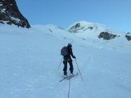 Schnee ab 1600m (la Para). Die Gletscher sind gut eingeschneit. Bei la Jonction (2750m) ca. 80m lange heikle Spaltenzone - angeseilt gut machbar. Der Schnee war von unten bis oben hart aber meistens gut griffig. Ab den Vallotbiwak (Skidepot) kurze stellen blank, aber gute Tritte. Insgesamt Ideale Verhältnisse.