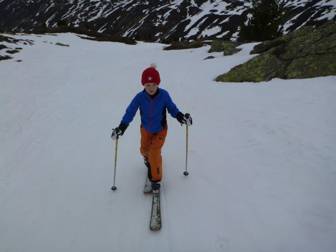 Super Luca (7 jährig), deine erste Skitour mit schönem Gipfelerfolgt. Gratulation! Din Papi