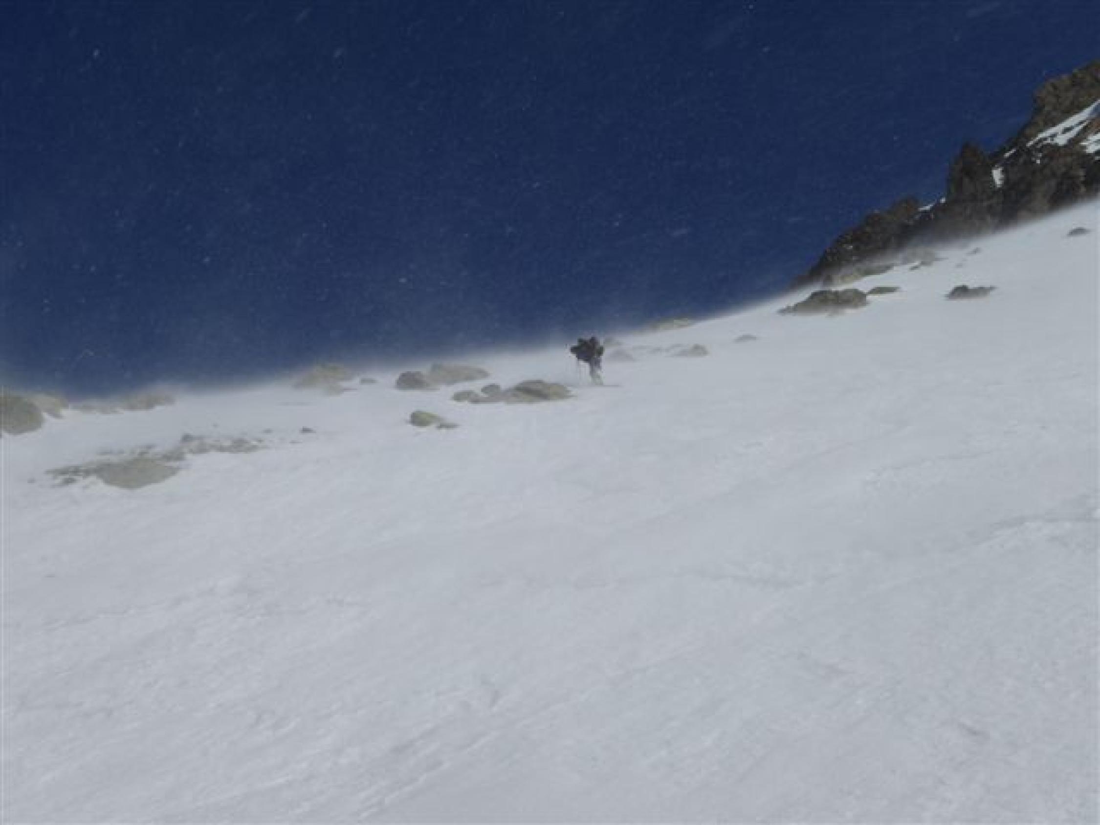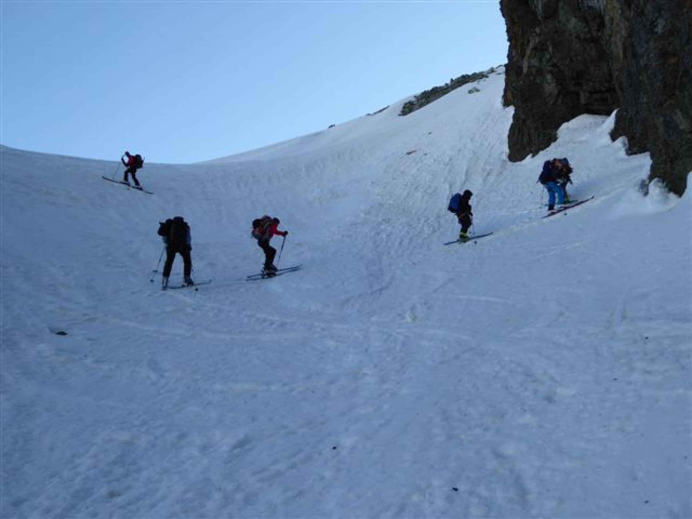 Durchwegs sehr harte Schneeverhältnisse auf der ganzen Tour. Gute Schneeverhältnisse auf der gesamten Route bis zur Cab de Dix.