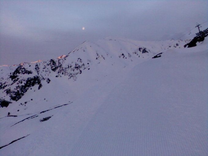 Noch genug Schnee.Bestens gepflegte Piste. Tolle Abfahrt.