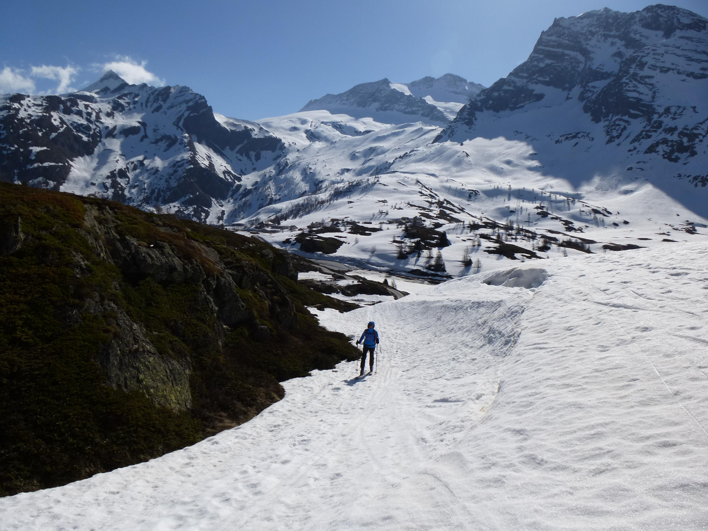 Durchgehend mit Ski machbar, eine kurze Stelle ohne Schnee