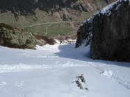 Abfahrt oben noch schwerer Pulverschnee, dann Sulzschnee bis unten, viele Studen am Schlusstei sehr mühsam ,aber es konnte noch weit