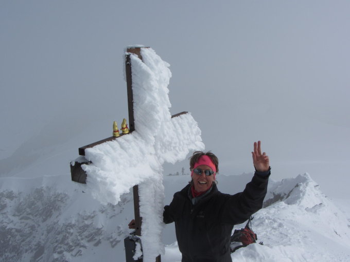 Gipfelgrat: Extrem schneegefüllt. Musste frisch gespurt werden. Ohne Steigeisen machbar.