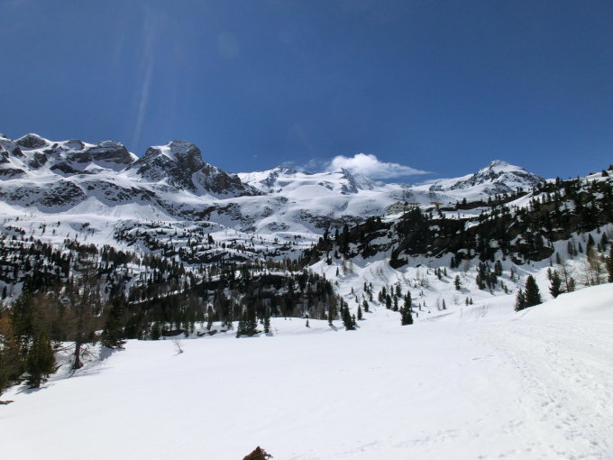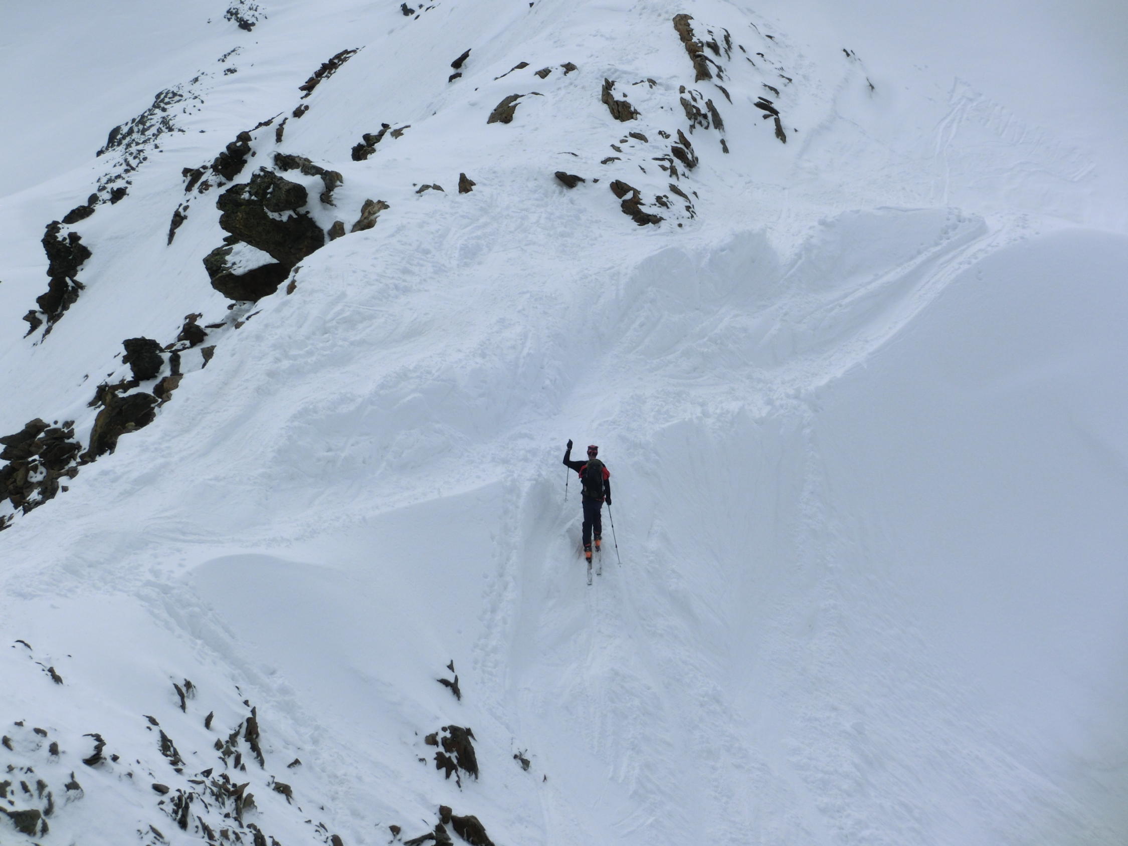 Frühjahrsbedingungen; Schnee aber ab Parkplatz; sind spät erst losgekommen, daher pappig; Abfahrt dennoch gut;