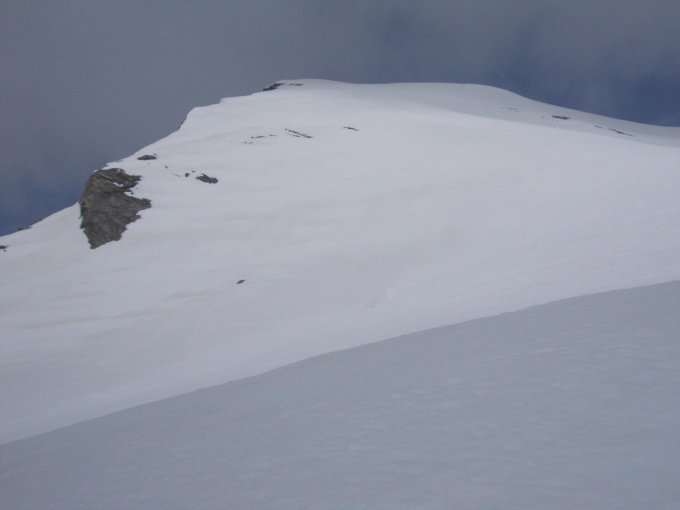 Abfahrt: Wir fuhren direkt über den Südkamm vom Gipfel ab. Harter Firn aber schön zum Fahren. Nach dem Gipfelhang warteten wir eine dreiviertel Stunde bis der Schnee aufsulzte.