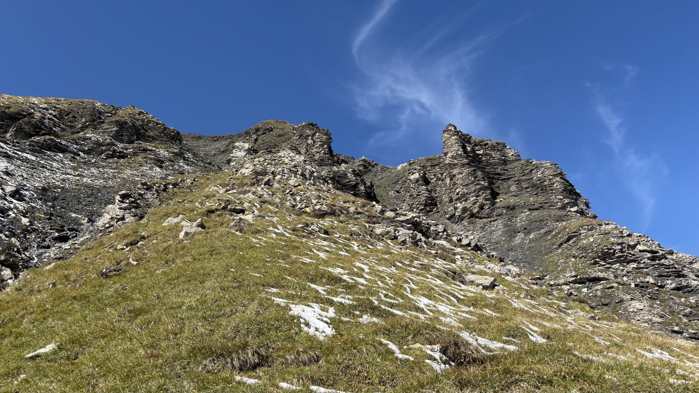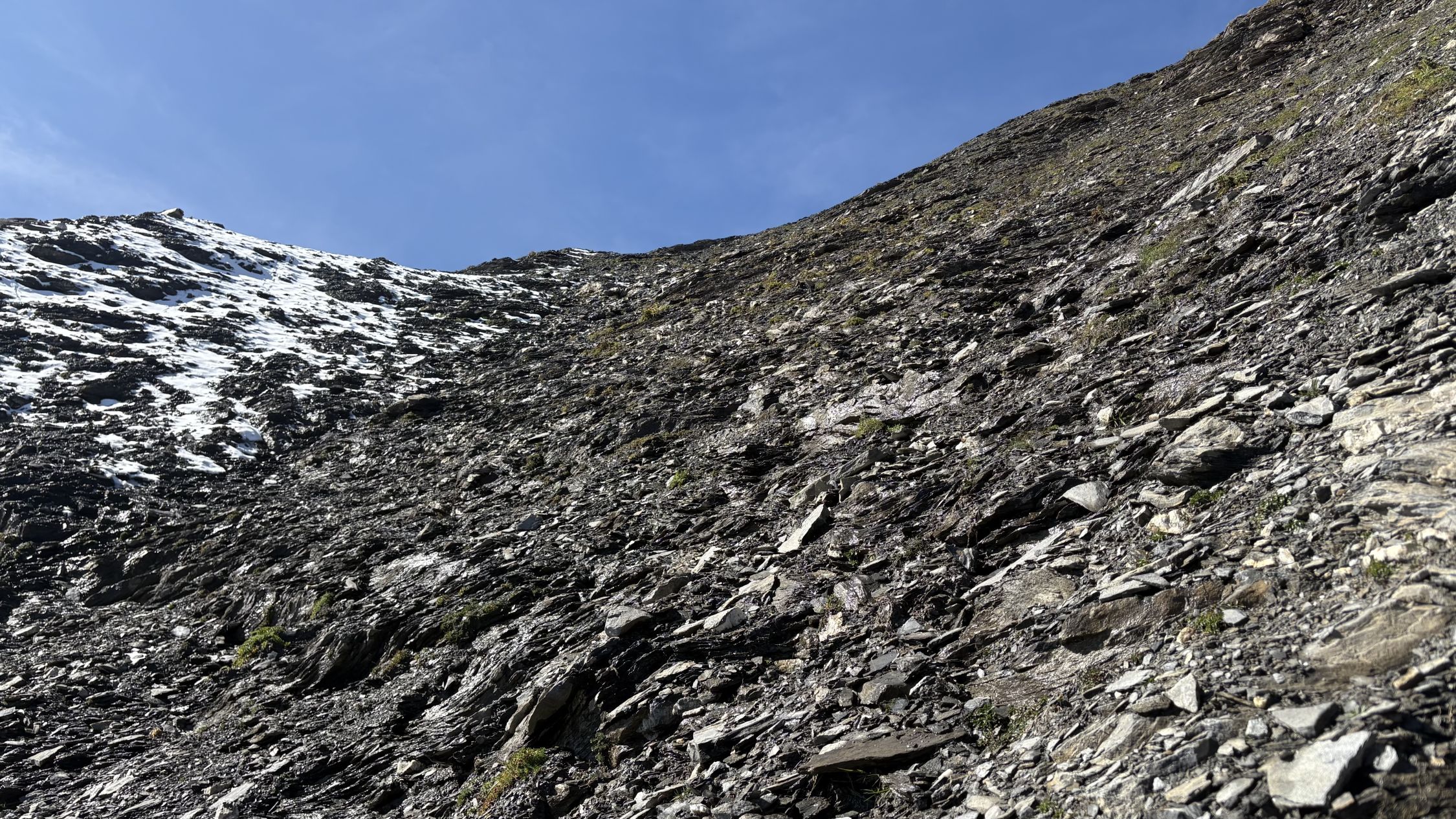 Der gestrige Schnee hat sich als heimtückische Molasse mit dem Schiefer verbunden. Wenn es trocken ist, sicher lohnend. Heute grenzwertig.