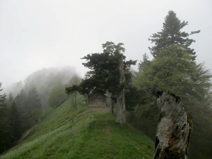 Abstieg später vom Schindelbergpass durch die Nordflanke unterm Schindelegg und über den Sporn nach Libingen zurück. Auf der Abstiegsroute war wegen des feuchten Bodens und des abschüssigen Geländes etwas Vorsicht geboten. Gesamtstrecke ca. 11 km