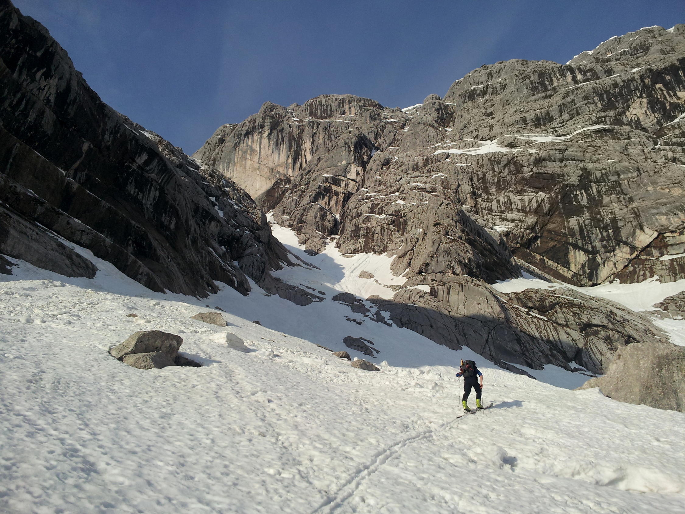 Prinzipiell noch ausreichend Schnee für eine Befahrung. Auch an den Engstellen noch genug.