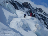Abfahrt auf dem Schwärzegletscher anfangs noch sehr gut zu fahren, leichter Deckel. Imposante Seracs auf ca 3240m. Weiter unten hatten wir Deckel, je nach Exposition teils Sulz.