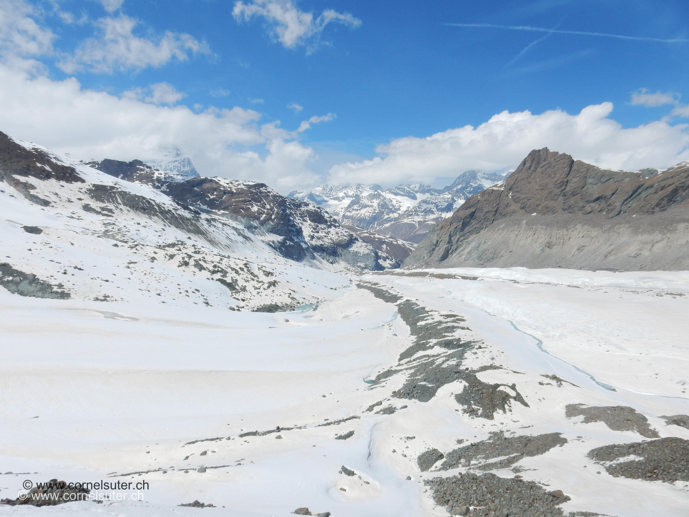 Seit anfangs April schmelzte der Schnee auf dem Gornergletscher, in der Schlucht und nach der Schlucht sehr.