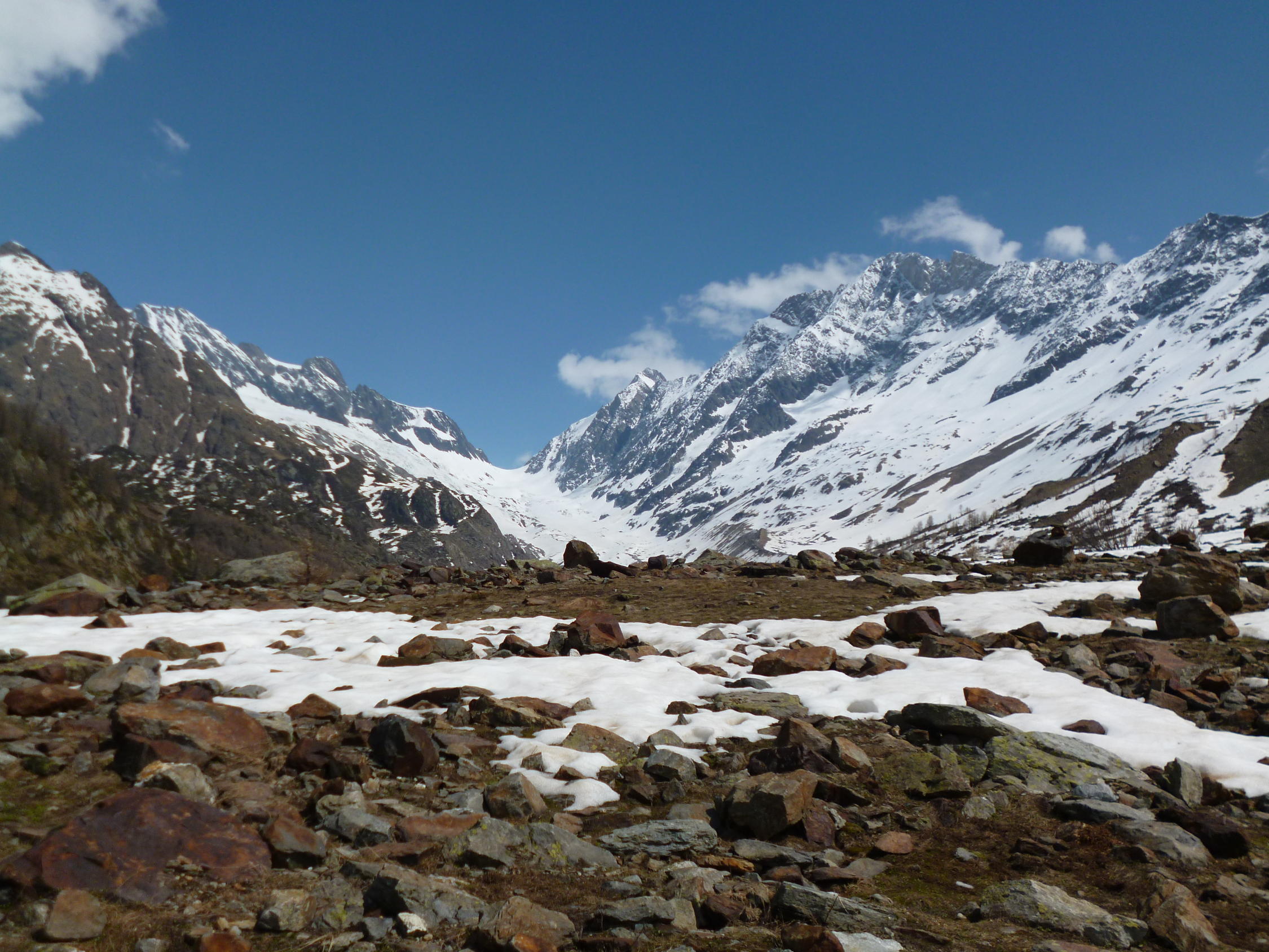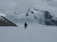 Ein Prachtstag; bis am frühen Nachmittag strahlend blauer Himmel. Gletscher gut eingeschneit; dank klarer Nacht Schnee beim Aufstieg weitgehend hart, bei der Abfahrt leicht aufgesulzt. Perfekte Frühlingsverhältnisse!