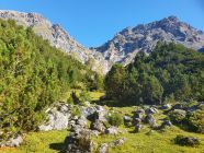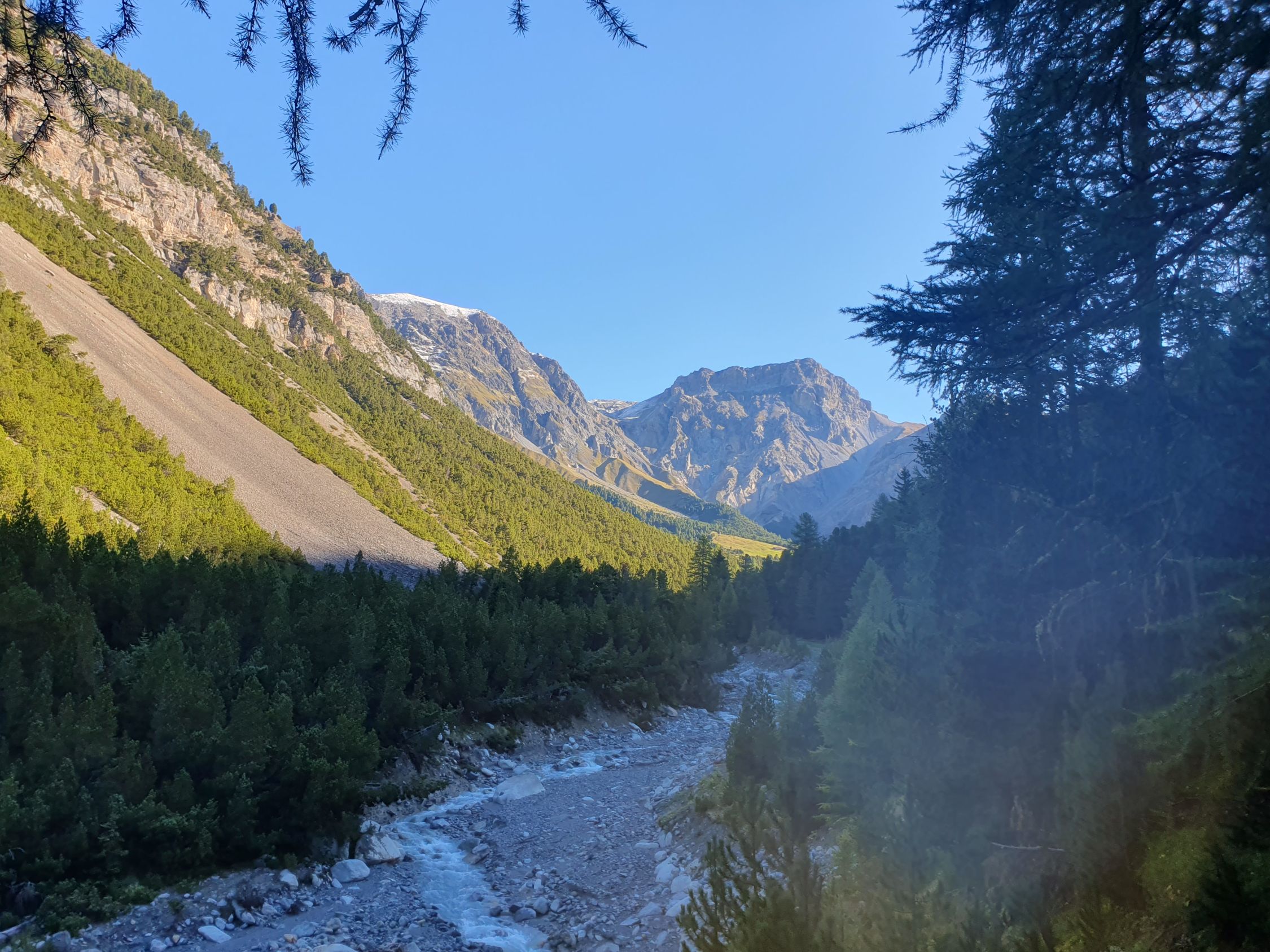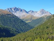 Auf dem Alp Weg von S-charl etwas frisch durch den Wald bis zur Alp Sesvenna und weiter steil auf dem blau markierten Wanderweg, der an gewissen Stellen mit Stahlketten entschärft wurde (mir standen sie mehr im Weg als sie mir etwas dienten), hoch zum Lajet da Lischana (P2855).