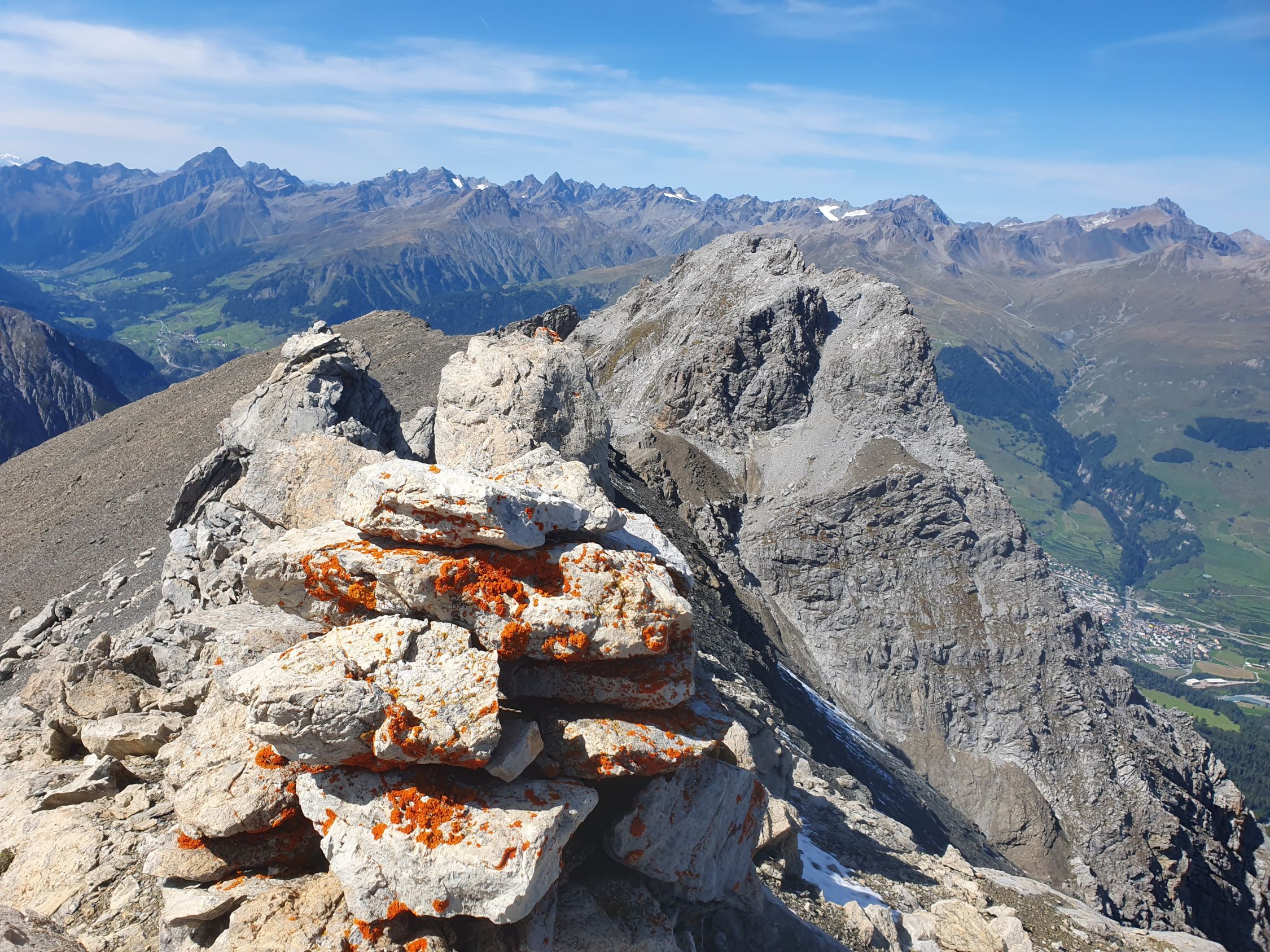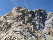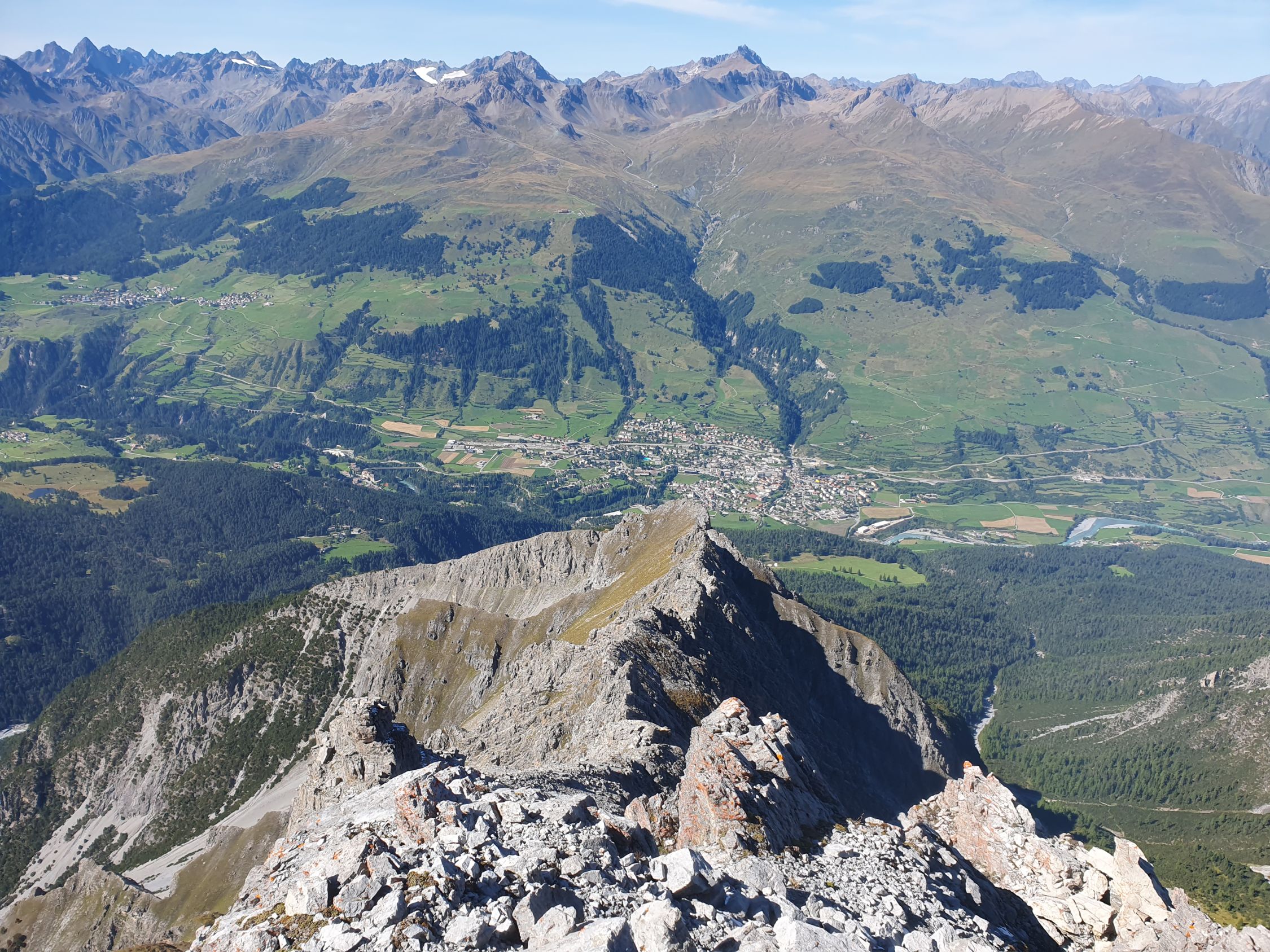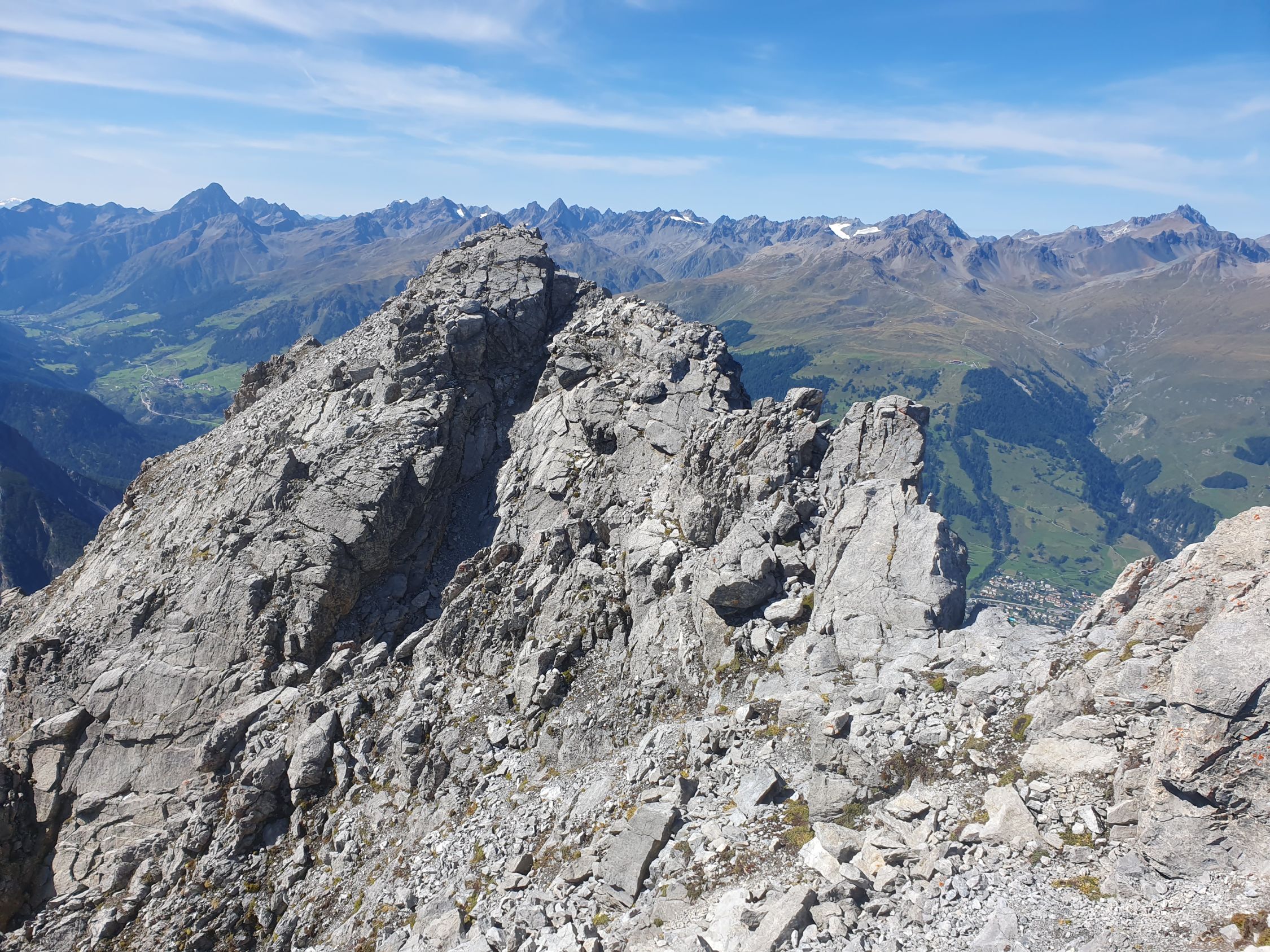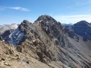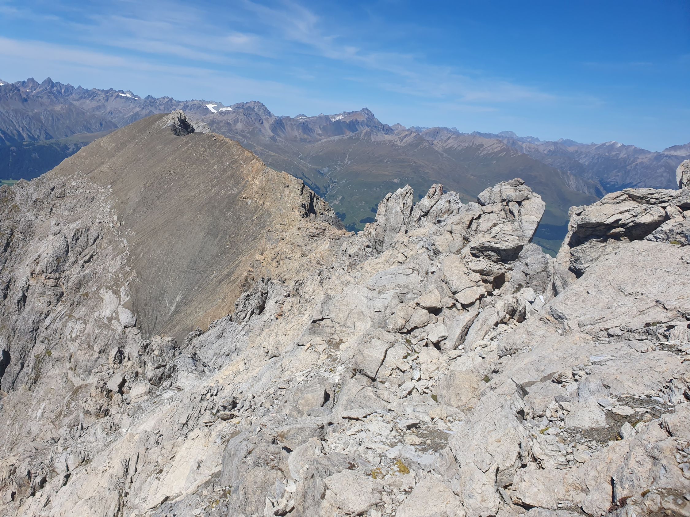Tolle Aussicht zum E-Grat des Piz Madlain und Testun: Es ist mir auch von dieser Seite her noch immer ein Rätsel wie man hier diesen Grat besteigen soll? Am 18.10.2022 (siehe mein Eintrag vom Piz Madlain) wollte ich diesen Grat als Abstieg wählen, war jedoch schon kurz nach dem Gipfel bereits aussichtslos gewesen...